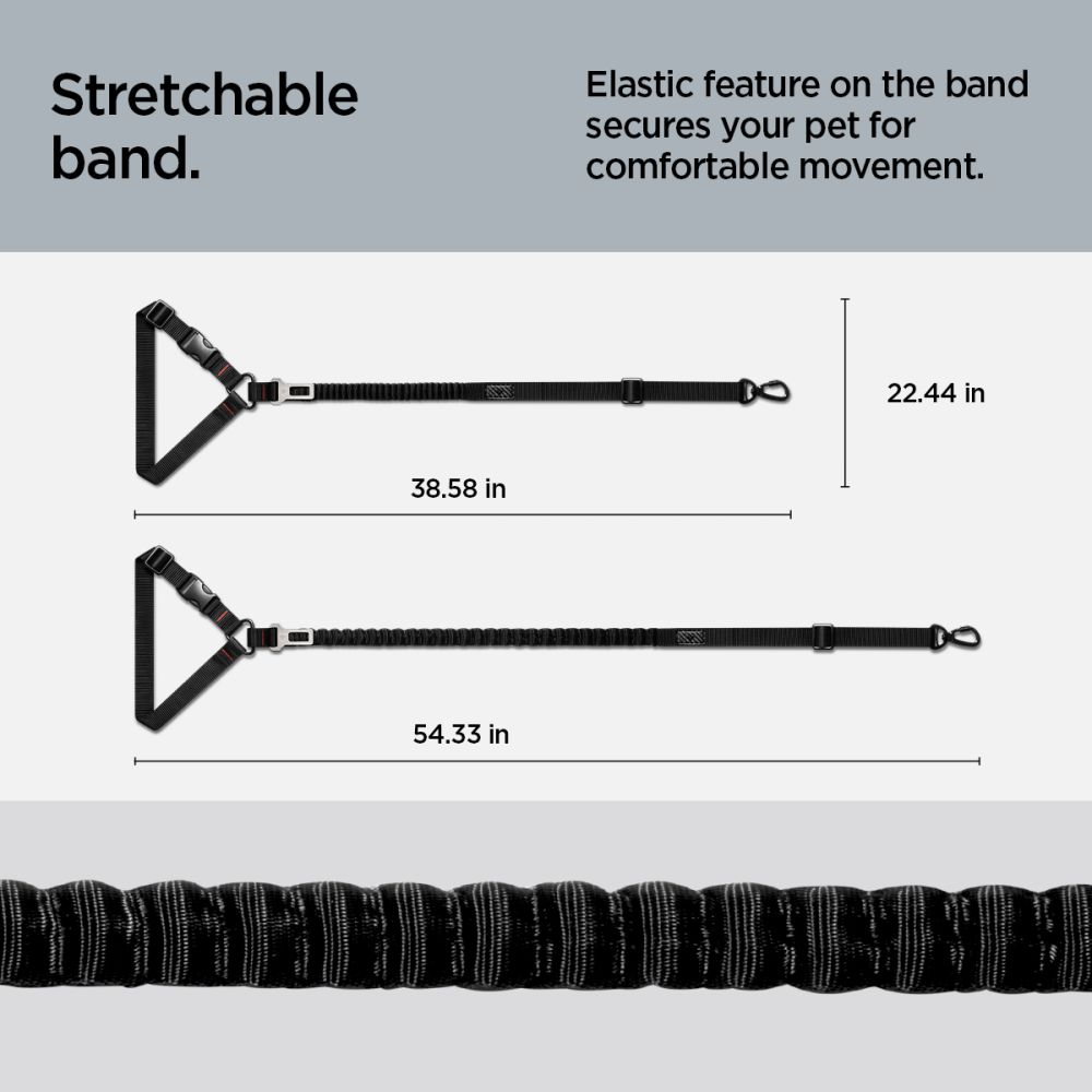 Med Spigen bilbelteholder for kjæledyr får din firbente venn en trygg og komfortabel plass under hele bilturen. Den elastiske stroppen demper plutselige bevegelser, mens den smarte 360° roterende karabinkroken reduserer floker og gir mer naturlig bevegelse. Dette gjør reisen roligere både for deg og kjæledyret ditt, samtidig som sikkerheten opprettholdes.