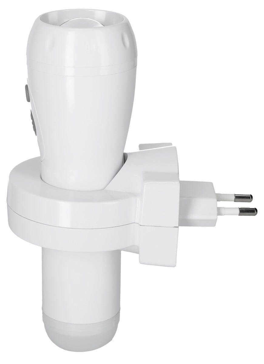 Det innebygde nattlyset tennes automatisk når det blir mørkt og gir et behagelig skinn, mens lommelykten enkelt tas ut når du trenger sterkere lys. Med flere lysnivåer kan du tilpasse styrken etter behov, og det oppladbare batteriet gir deg opptil 1 times bruk når det gjelder.
