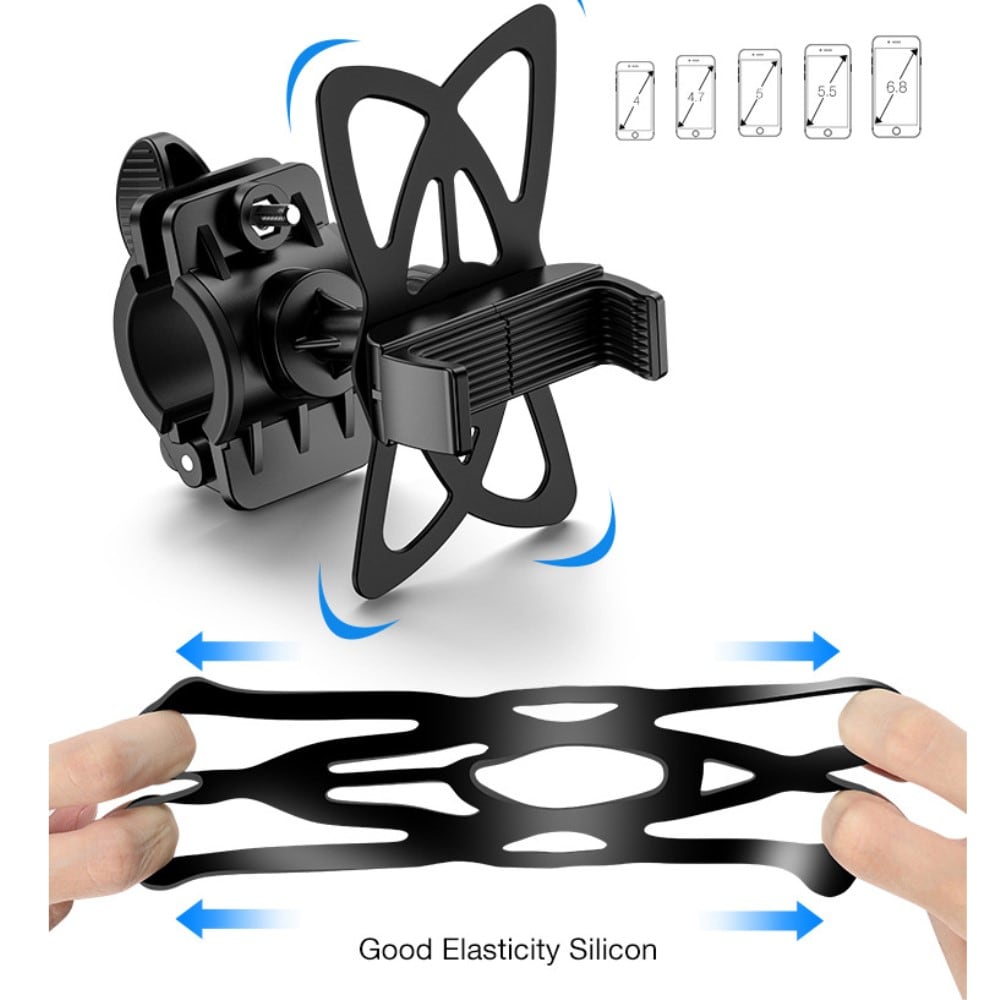 Ikke stress med humpete veier - denne mobilholderen holder mobilen din i et jerngrep (okei da, et elastisk silikongrep - men det er like stødig!). Fest den rett på styret, vri og snu med 360° rotasjon, og maks ut sykkelturen med musikk, kart eller treningsapper - alt rett foran deg, bokstavelig talt.