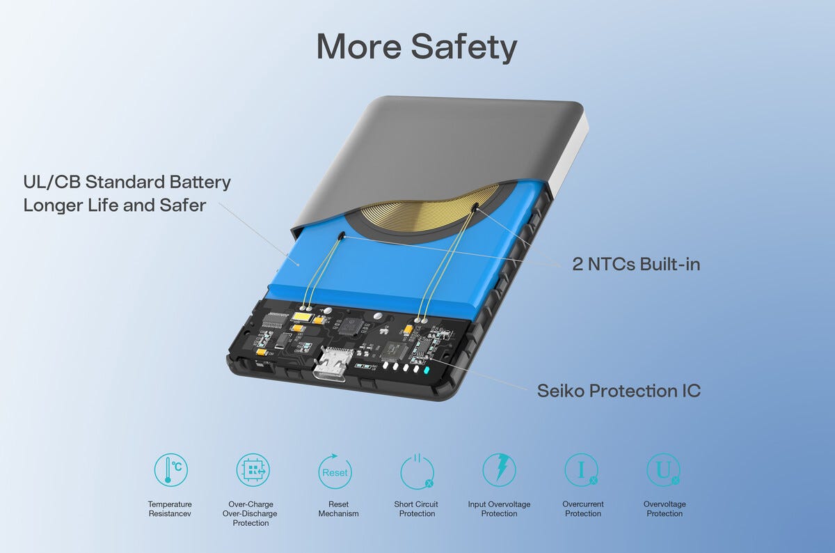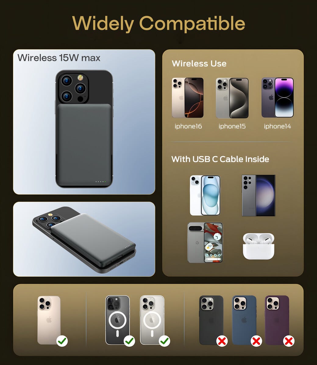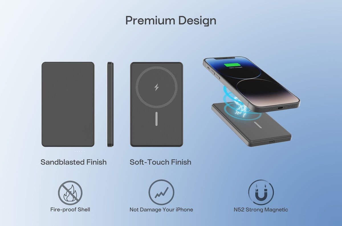 Si hei til denne magnetiske og trådløse powerbanken som gjør det lekende lett å holde enhetene dine ladet hele dagen! Med slank design og kraftig kapasitet på 5000 mAh får du ekstra energi når mobilen begynner å bli sliten. Fest powerbanken direkte på kompatible enheter med MagSafe eller Qi og nyt stabil trådløs lading opptil 15 W. Perfekt å ha i vesken på reise, pendling eller travle dager når du vil slippe kabelrot. Trenger du kabel kan du enkelt lade via USB-C for fleksibel bruk. Godkjent å ta med på flyreiser og laget for å kombinere smart funksjon, trygg lading og portabel frihet i et kompakt format.