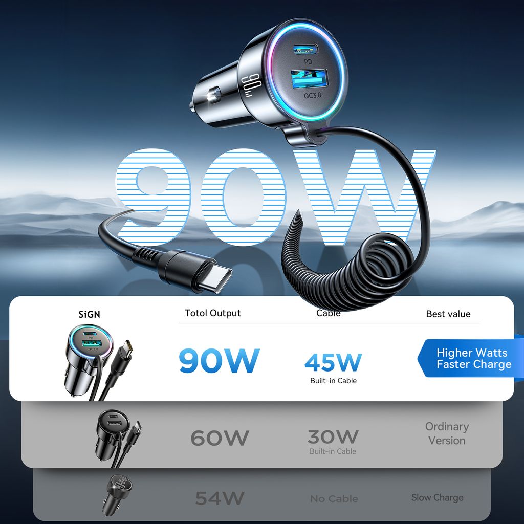 Hold batteriet fullt hele bilturen med SiGNs kraftige 90W billader. Den smarte 3-i-1 løsningen gjør det enkelt å lade flere enheter samtidig uten stress. Med støtte for Power Delivery og Quick Charge får du rask lading til både mobil, nettbrett og laptop direkte i bilen. Den innebygde USB-C-kabelen gjør det ekstra enkelt å koble til uten å lete etter ledninger. Den kompakte formen og det slitesterke, brannsikre PC-materialet gjør laderen til en trygg følgesvenn på både korte og lange turer.