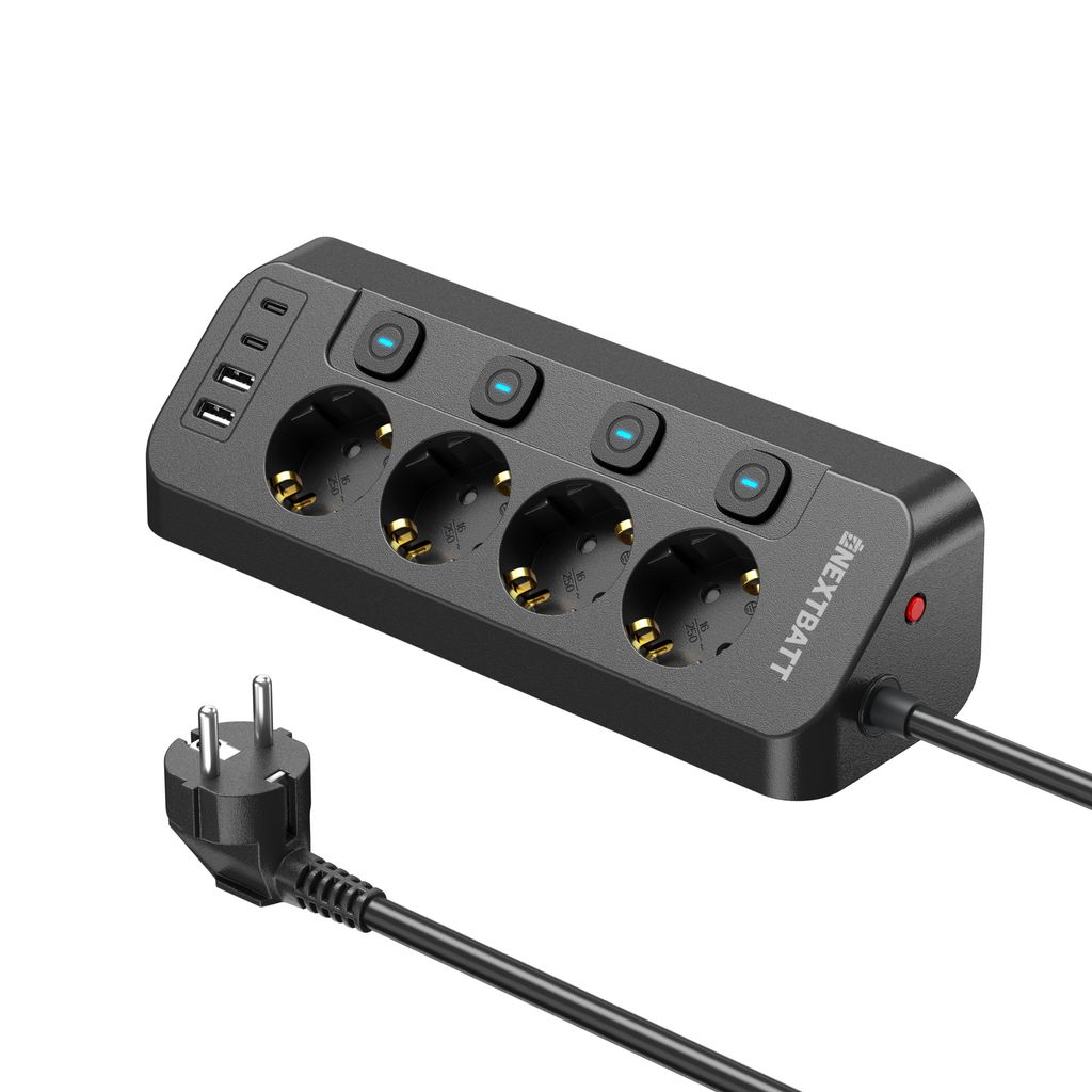 Gi stikkontaktene dine en smart oppgradering med NEXTBATTs grenuttak som gjør lading både enklere og morsommere i hverdagen. Med fire AC-uttak og fire USB-porter, 2x USB-C og 2x USB-A, samler du all lading på ett sted uten stress. Perfekt for hjemmet eller kontoret der mange enheter trenger strøm samtidig. Den lange kabelen på 1,8 meter gir deg fleksibel plassering der du trenger det mest. Den robuste konstruksjonen håndterer også mer krevende enheter uten problemer. Den smarte trekantformede designen med 90 graders vinkel gjør at den passer perfekt i hjørner, langs vegger eller under bordkanter for en ryddig og stilren løsning.