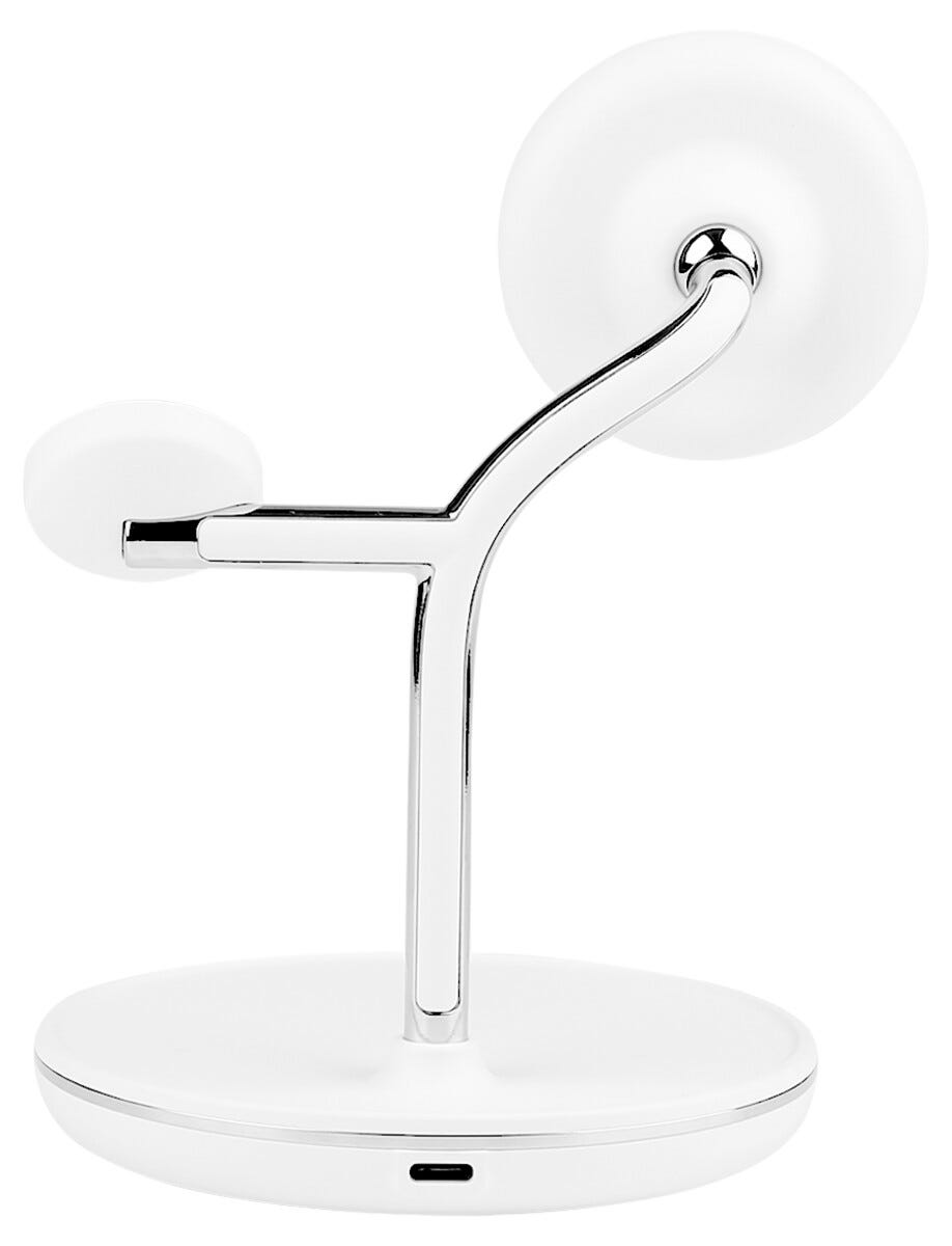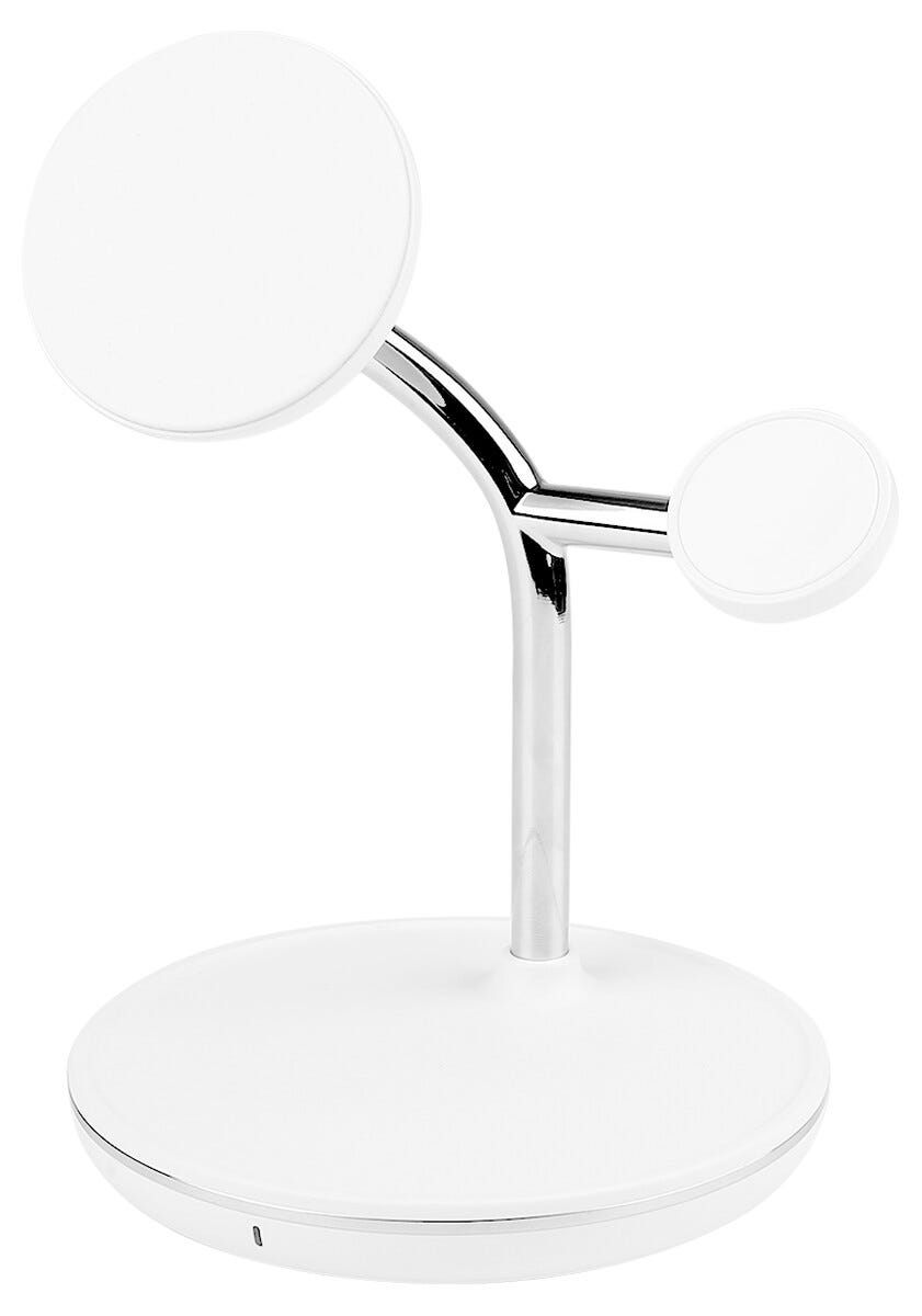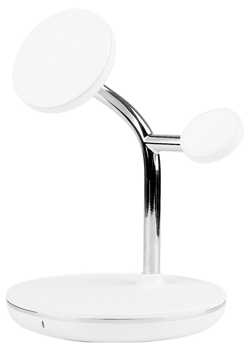 Få en mer organisert og smidig ladeløsning med en magnetisk trådløs Qi2 ladestasjon 3-i-1 som lar deg lade mobil, Apple Watch og AirPods samtidig. Den magnetiske utformingen holder telefonen stabilt på plass mens Qi2-teknologien gir rask og effektiv lading med opptil 15 W effekt. Separate ladeflater gjør det enkelt å lade både smartklokke og trådløse hodetelefoner parallelt uten kabelrot. Det stilrene designet gjør ladestasjonen perfekt å plassere på skrivebordet eller nattbordet når du vil samle all lading på ett sted og skape en mer strukturert teknologihverdag.
