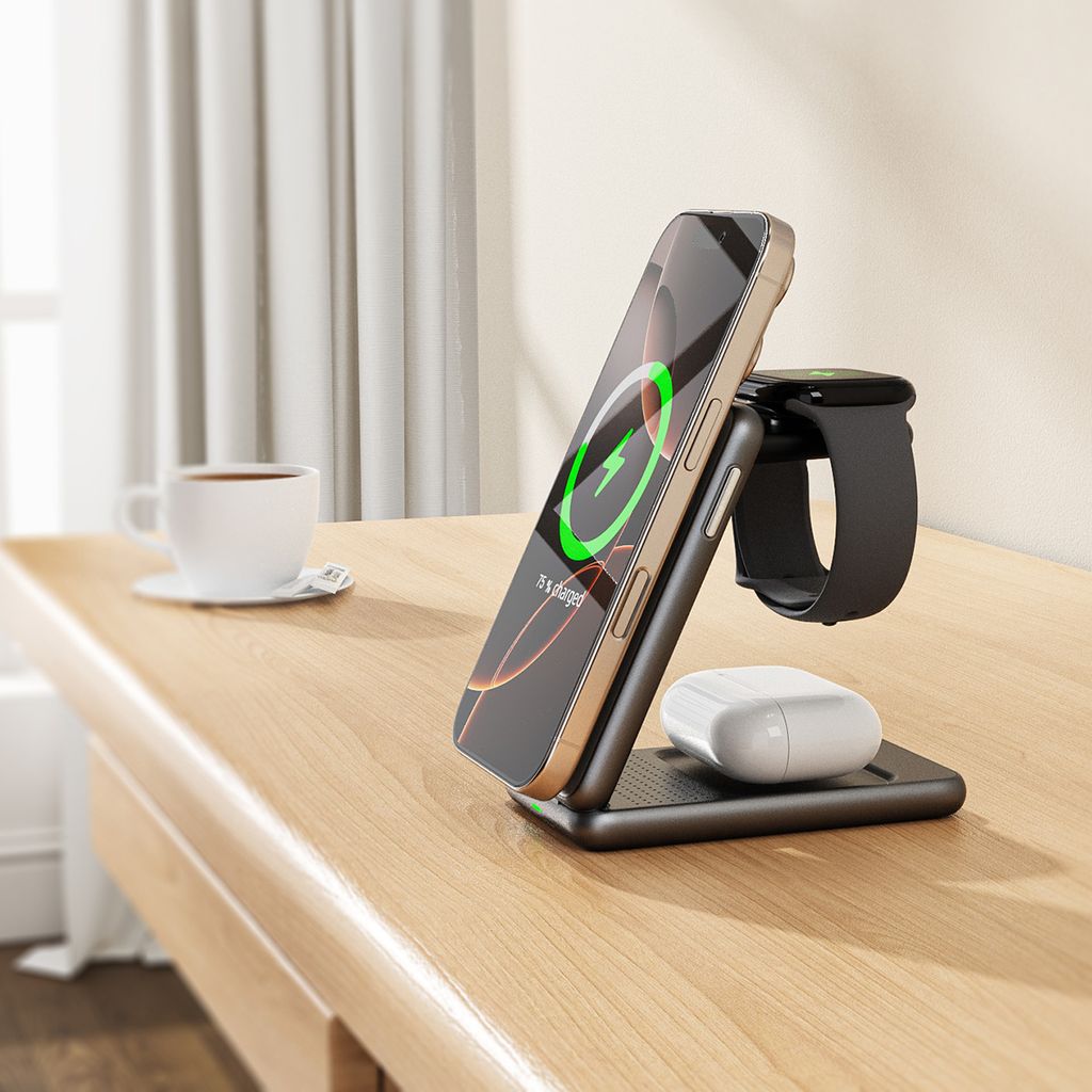 - 3-i-1 ladestasjon for mobil, Apple Watch og hodetelefoner