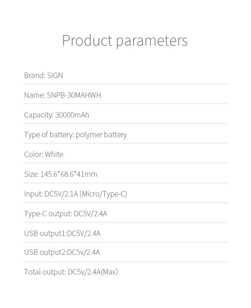 - Pakken inneholder 1x SiGN Powerbank 30 000 mAh og 1x Micro-USB-kabel, 0,25 m
