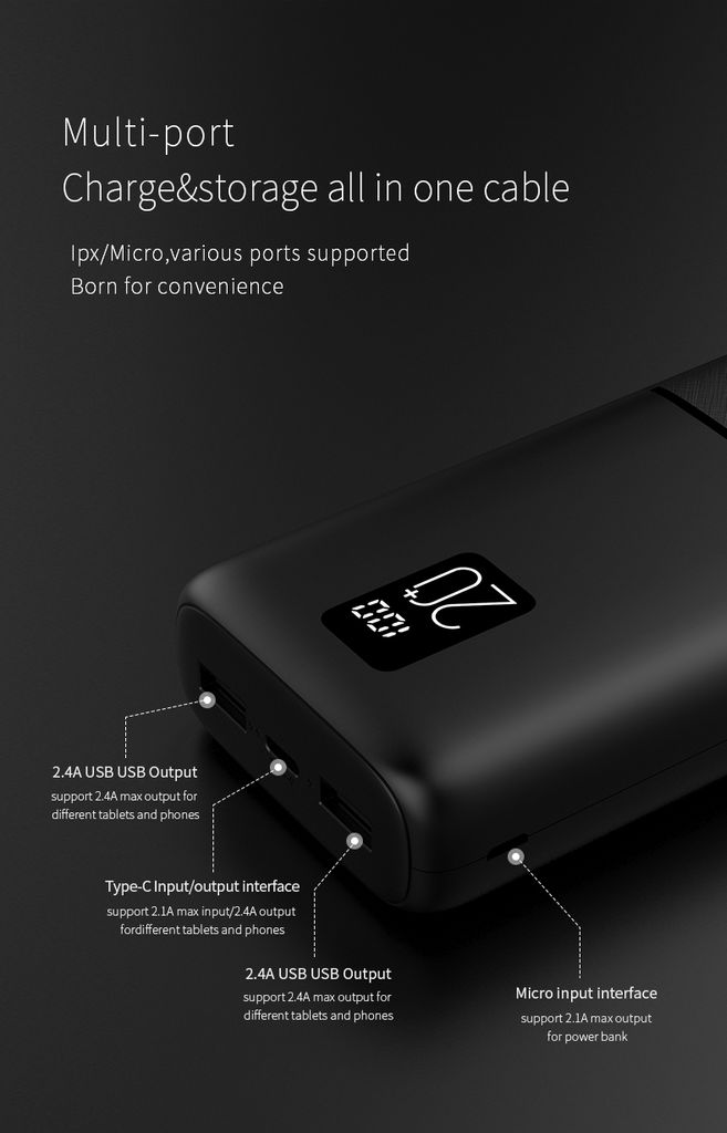 - Kapasitet: 20 000 mAh / 74 Wh