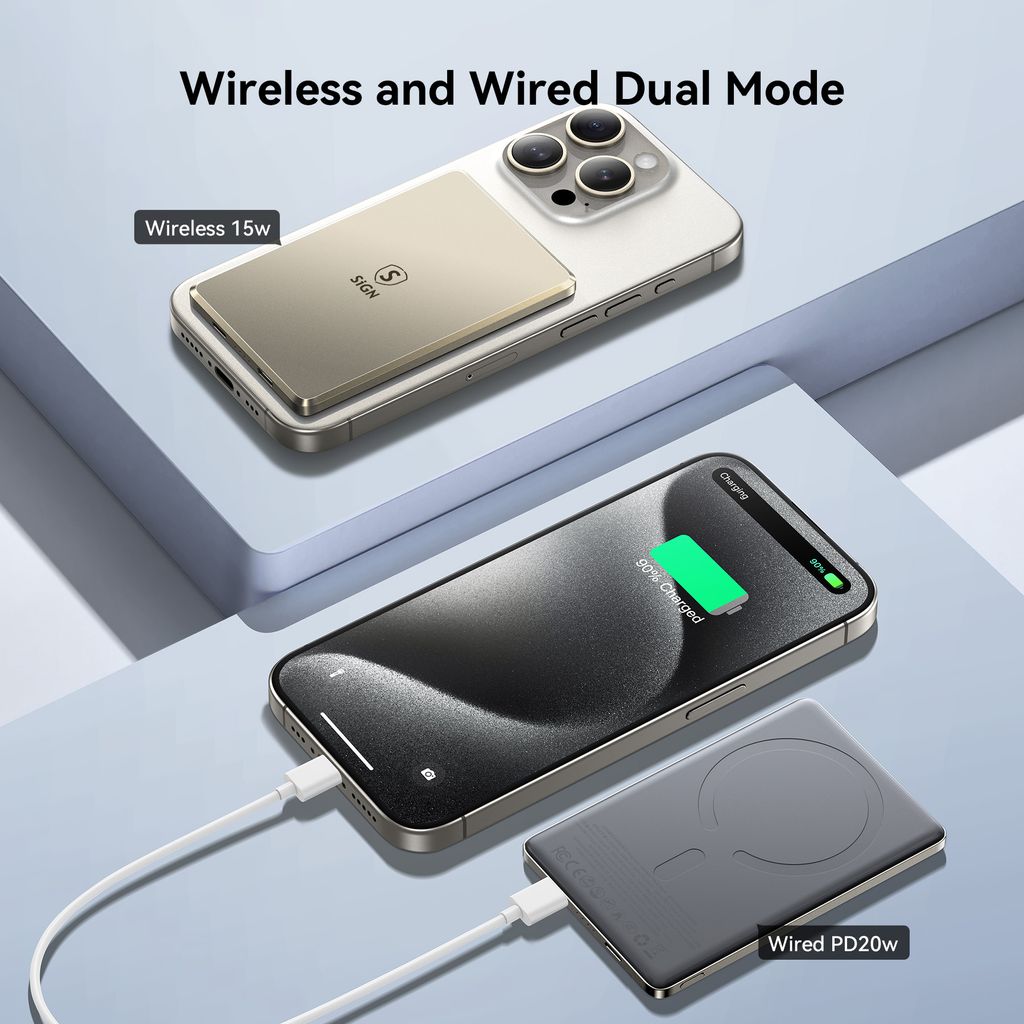 SiGN Magnetic Wireless Powerbank 5000mAh 20W Ultra Slim er powerbanken for deg som vil ha maksimal kraft i et kompakt format. Den ultraslanke designen gjør den enkel å ha med i lommen eller vesken, og den sterke magneten holder mobilen stabil for enkel trådløs lading hvor som helst. Perfekt for reiser, jobb og hverdagsbruk.