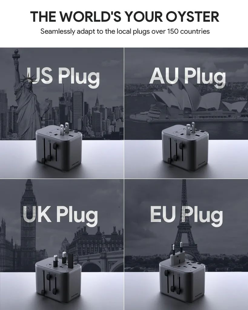 Med to USB-C-porter og to USB-A-porter kan du lade opptil fire enheter samtidig. USB-C hurtiglading opptil 20W gir rask og effektiv lading, perfekt på flyplassen, hotellet eller på farten. Den kompakte designen gjør den enkel å ta med overalt, og innebygd beskyttelse holder enhetene dine trygge.