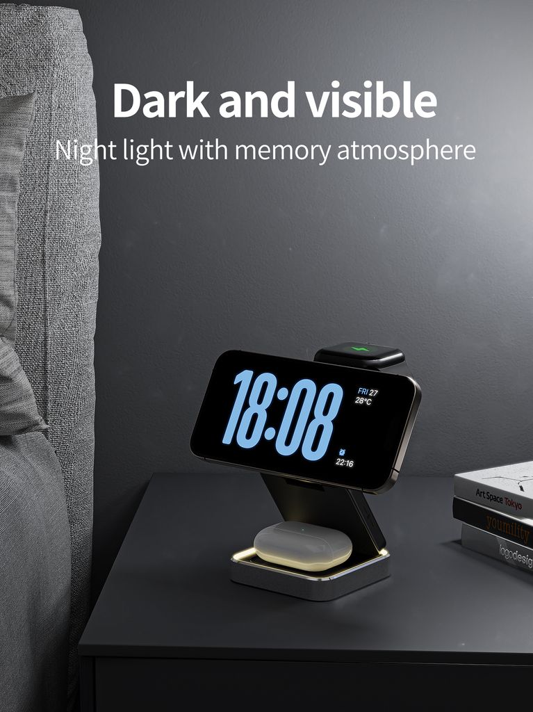 SiGN - Sammenleggbar 3-i-1 Trådløs Magnetisk Ladestasjon 15W, Svart