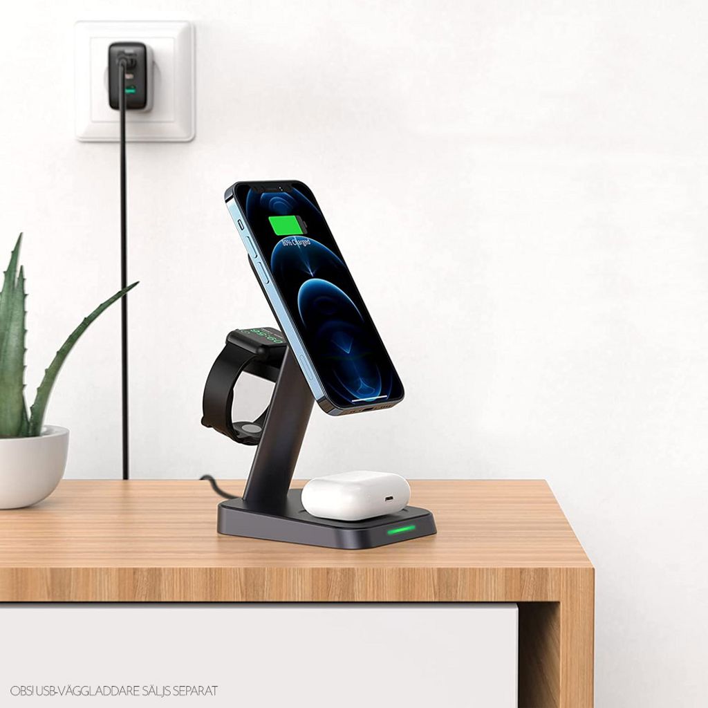 - 3-i-1 ladestasjon for mobil, Apple Watch og AirPods