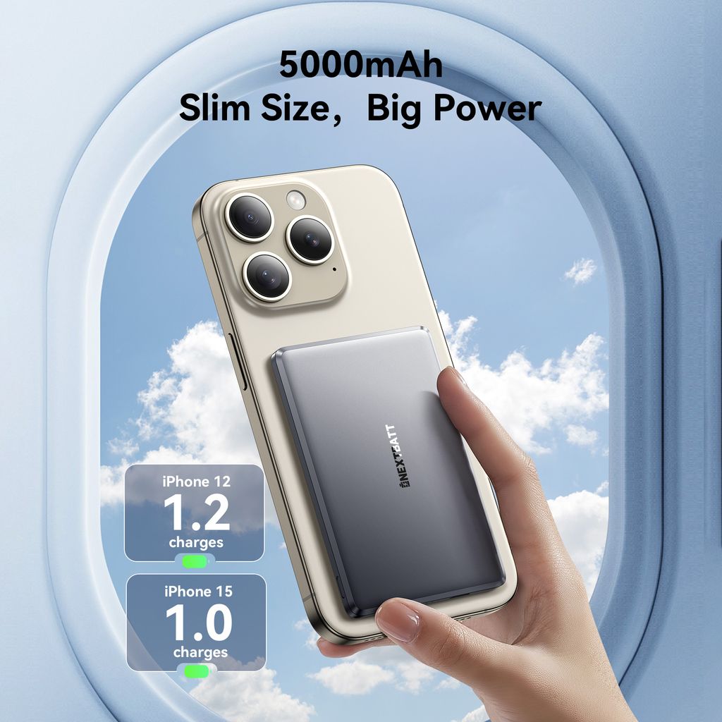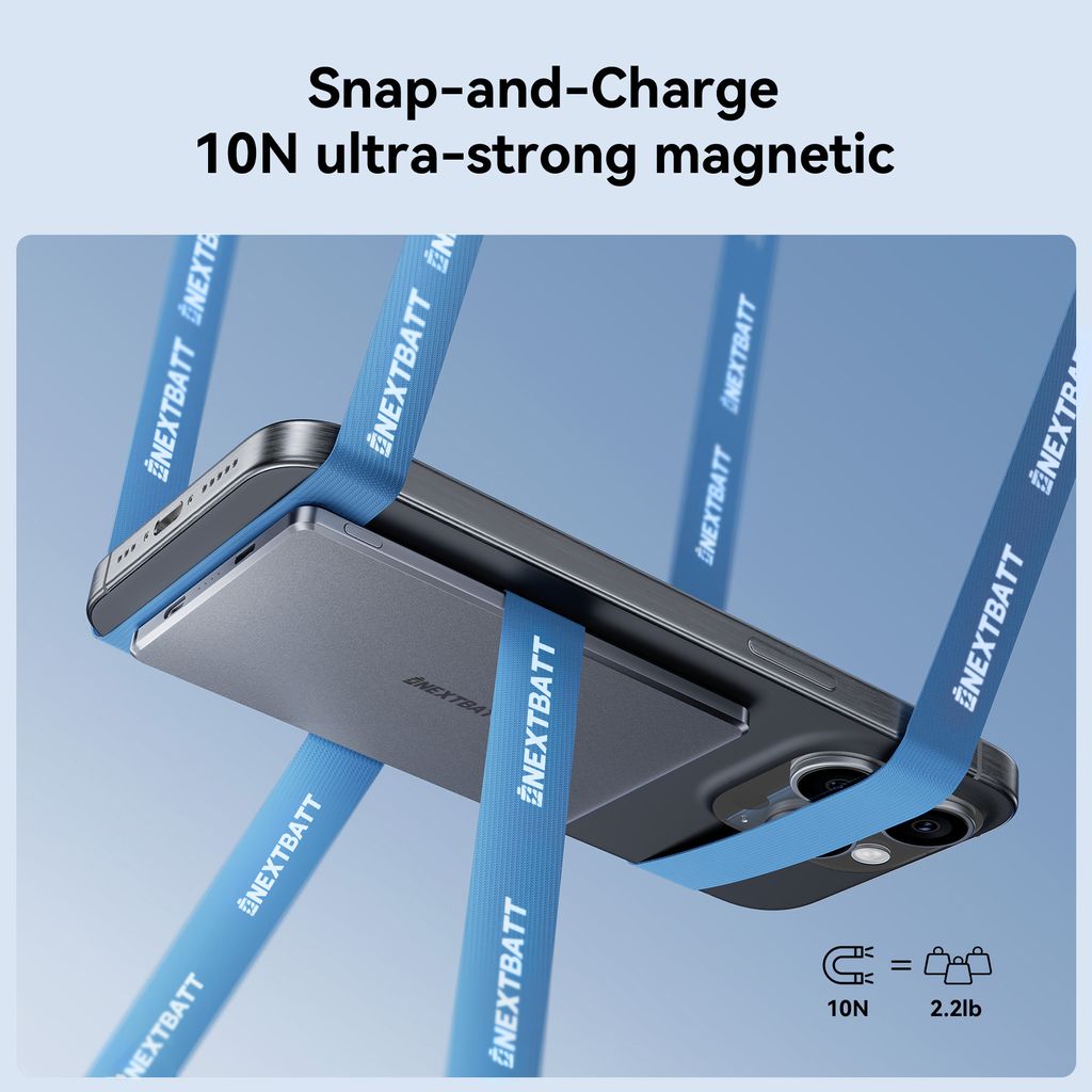 Få strøm når du trenger det med NEXTBATT magnetisk trådløs powerbank 5000mAh 20W. Det ultratynne designet gjør den enkel å holde og ta med overalt. Den sterke magnetiske festingen på 10 N klikker telefonen sikkert på plass og gir stabil trådløs lading. Med støtte for trådløs lading opptil 15W og PD 20W hurtiglading via USB-C får du rask og effektiv lading. LED-indikatoren viser batterinivået tydelig. Den kan lade flere enheter, og lavstrømmodus gjør den ideell for hodetelefoner, smartklokker og aktivitetsarmbånd. Laget av brannsikkert PC og ABS-materiale for sikker bruk.