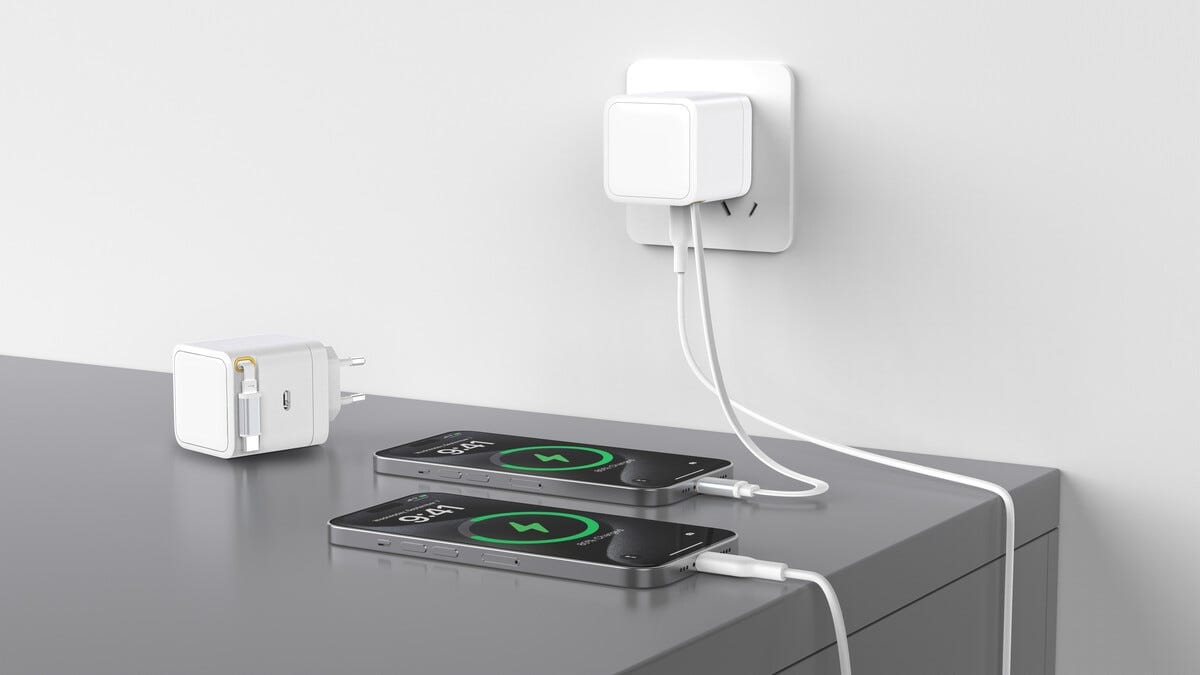 Sjekk ut denne smidige 65 W hurtigladeren som gjør ladingen enklere med en gang. Den integrerte og uttrekkbare USB-C-kabelen gjør at du slipper kabelrot og alltid har strøm klar når batteriet begynner å bli lavt. Med kraftig GaN-teknologi får du rask energi i et kompakt format som passer perfekt hjemme, på kontoret eller på reise. Med to USB-C-tilkoblinger kan du lade flere enheter samtidig og holde mobilen, nettbrettet eller laptopen klar for neste øyeblikk (1 ekstra kabel kreves, selges separat). En liten men smart ladevenn som gir rask kraft og en enklere hverdag.