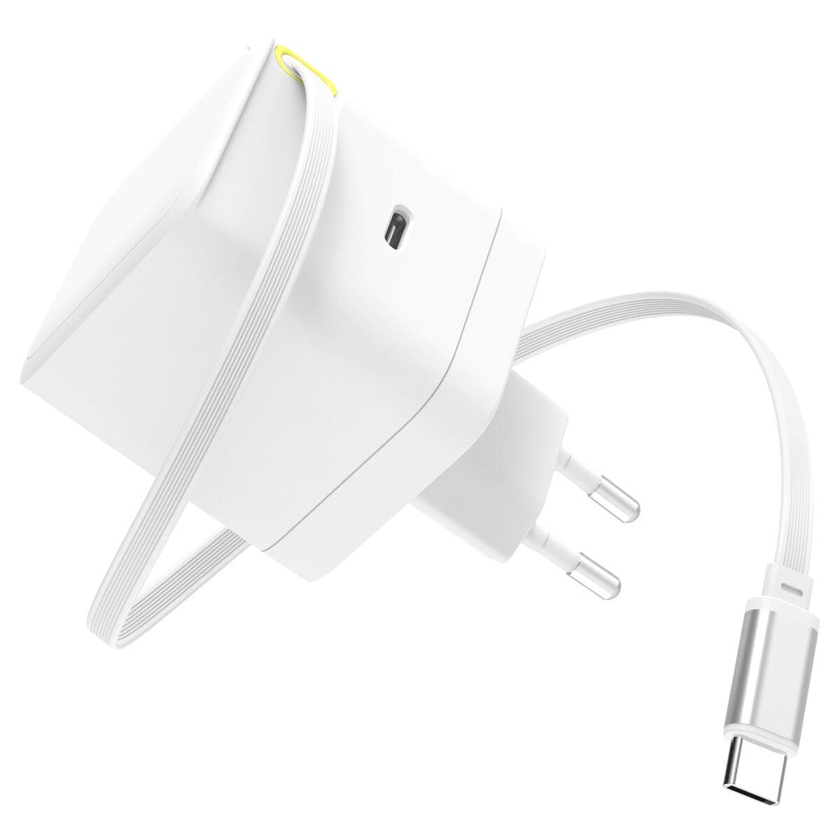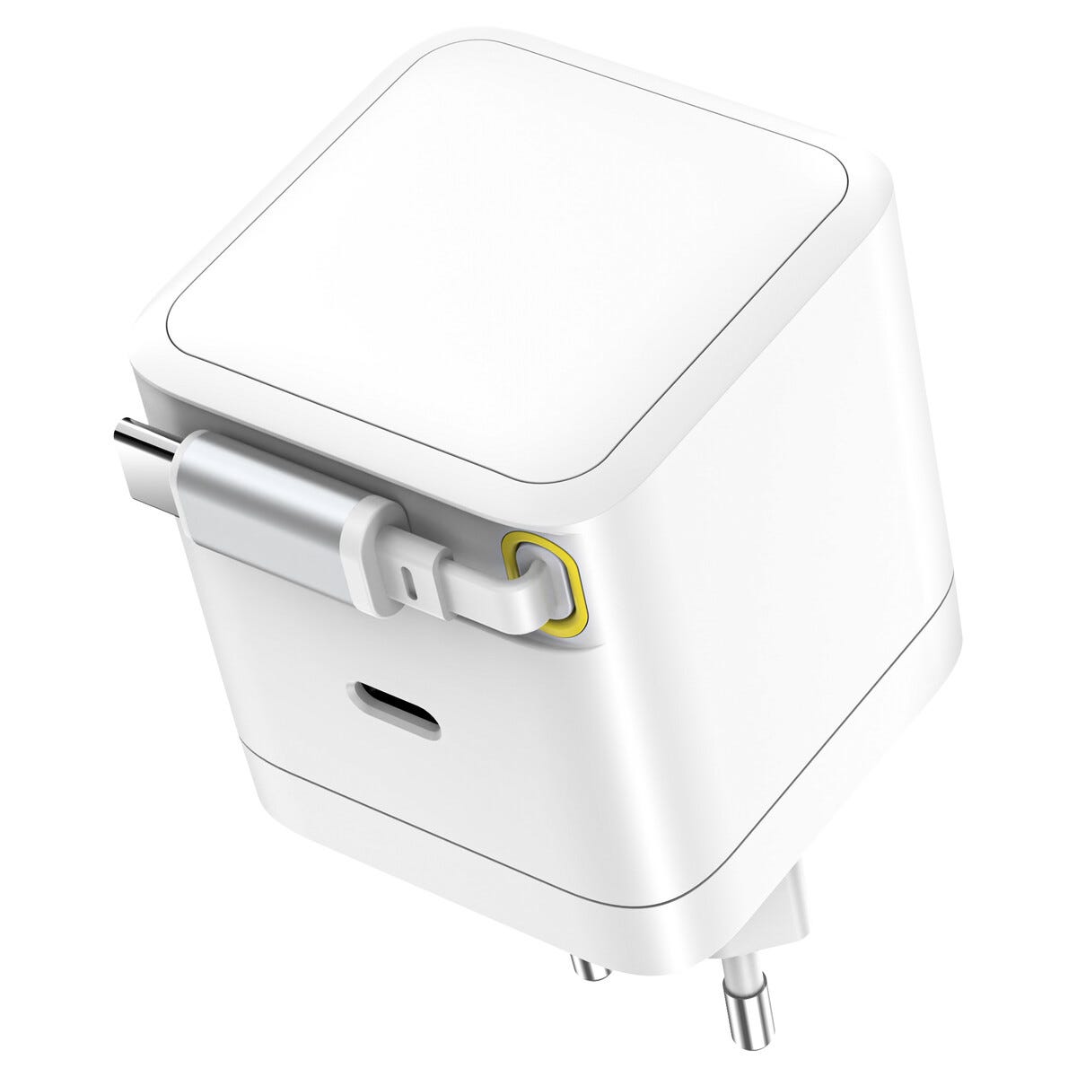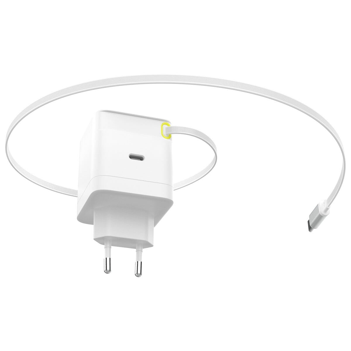 65W Hurtiglader med uttrekkbar USB-C kabel, Hvit