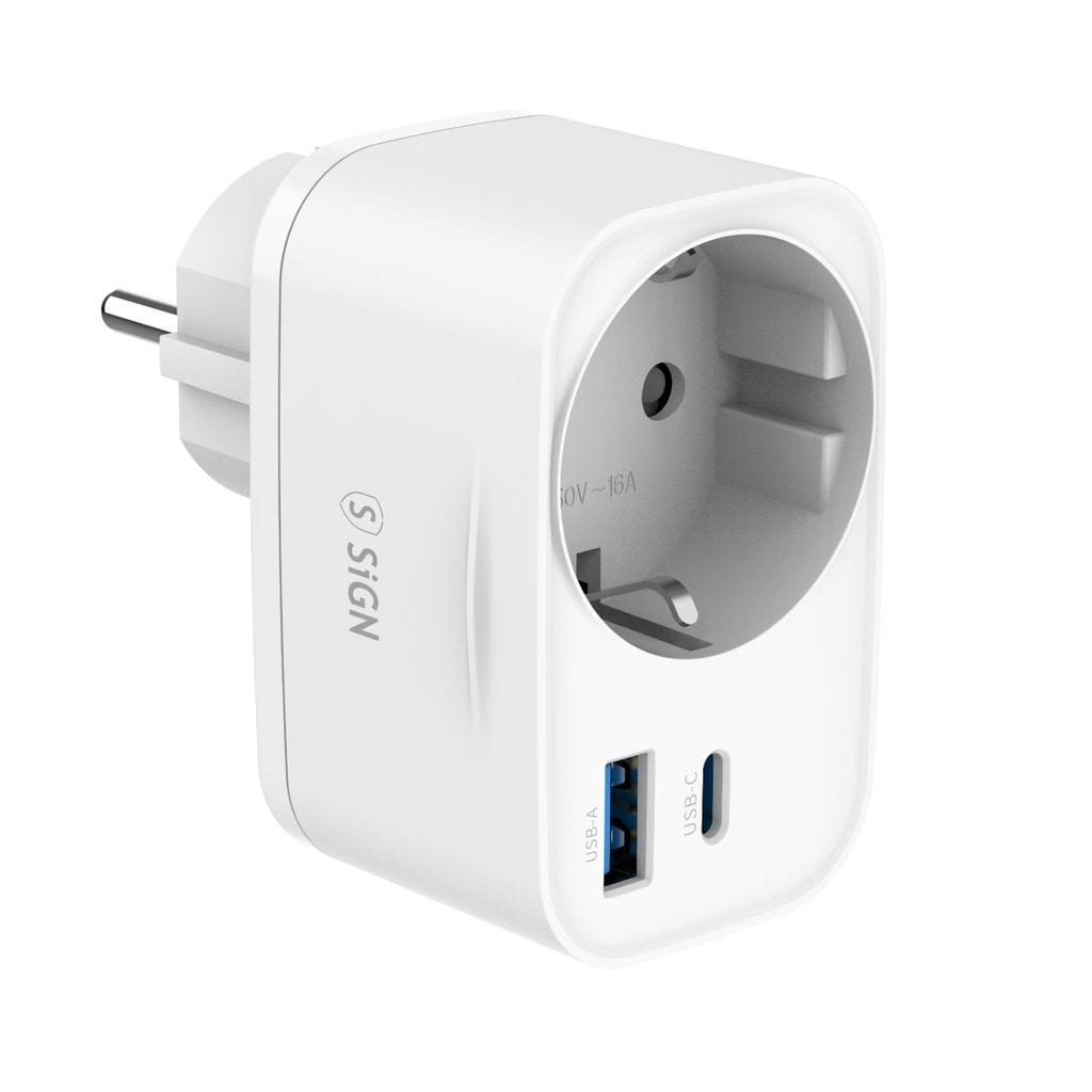 Si hei til din nye ladefavoritt. Denne smarte veggadapteren fra SiGN gjør det enkelt å holde alle dingsene dine klare for dagens planer. Koble til mobilen, nettbrettet eller hodetelefonene og la ladingen gå sin gang mens du fortsatt kan bruke det vanlige strømuttaket. Med hurtiglading via USB-C opptil 20 W får du raskt ny energi når batteriet begynner å bli lavt, samtidig som USB-A-porten sørger for stabil lading til klassiske kabler og enheter. Perfekt ved sengen, på skrivebordet eller i stuen når du vil ha en smidig løsning. Den kompakte utformingen gjør den enkel å ta med på reise, og innebygde beskyttelser gir trygg lading hver dag.