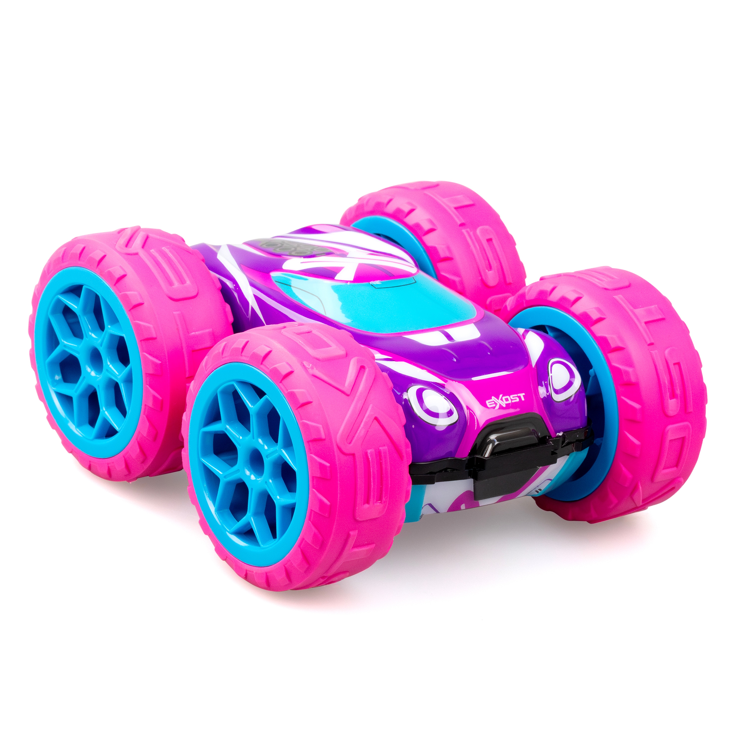 Bilen drives av et oppladbart batteri som enkelt lades via USB-C, slik at den raskt er klar for neste stunt. Med 2,4 GHz-styring kan flere radiostyrte biler kjøres samtidig uten forstyrrelser. De slitesterke EXOST-dekkene gir godt grep både på gulv og tøffere underlag, og den tosidige designen gjør at bilen ser like kul ut uansett hvordan den lander.
