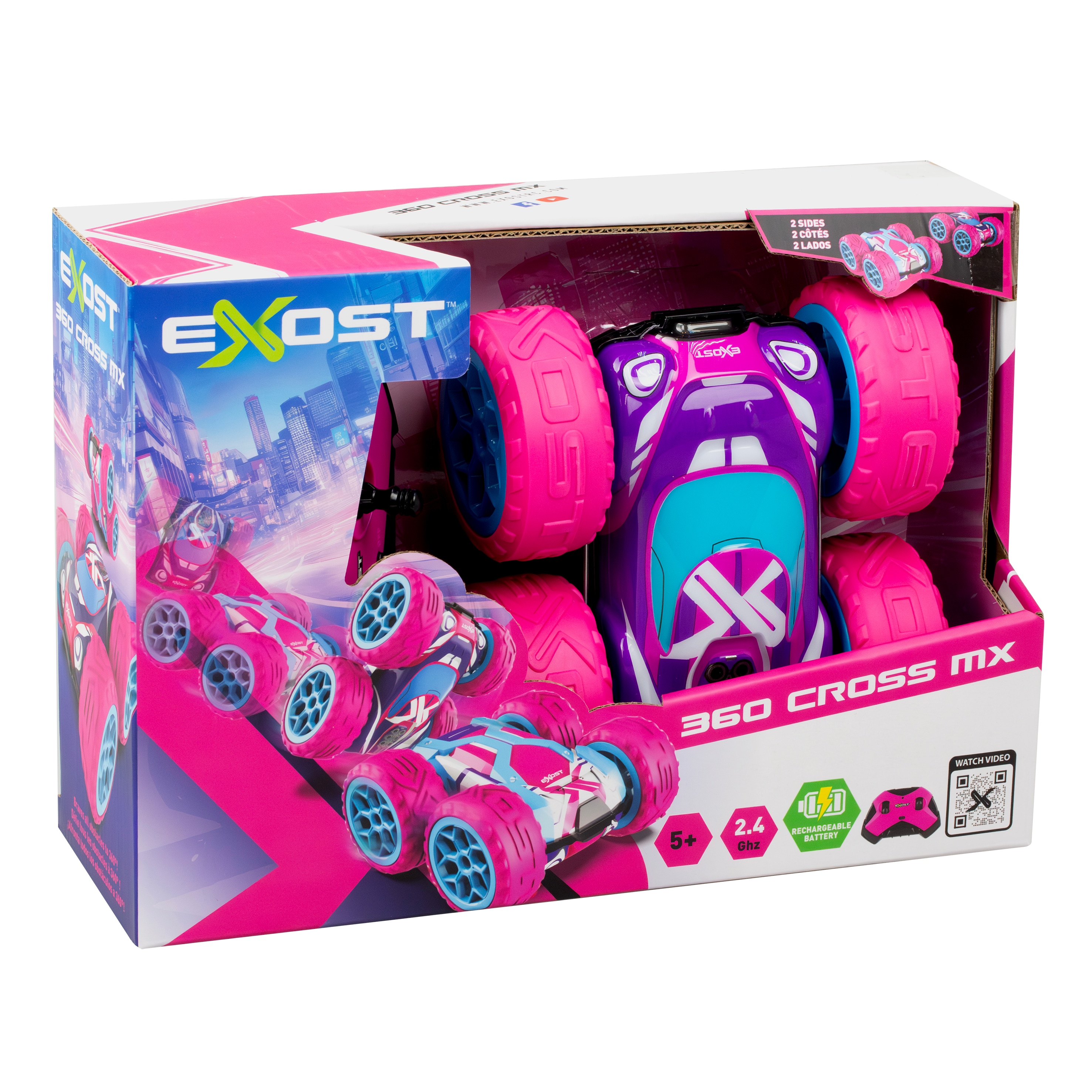 360 Cross MX er en supermorsom radiostyrt stuntbil som elsker action. Den kan kjøre på begge sider, gjøre kule 360°-spinn og fortsetter å kjøre selv når den lander opp ned. Perfekt for fartsfylte race, triks og lek uten avbrudd.