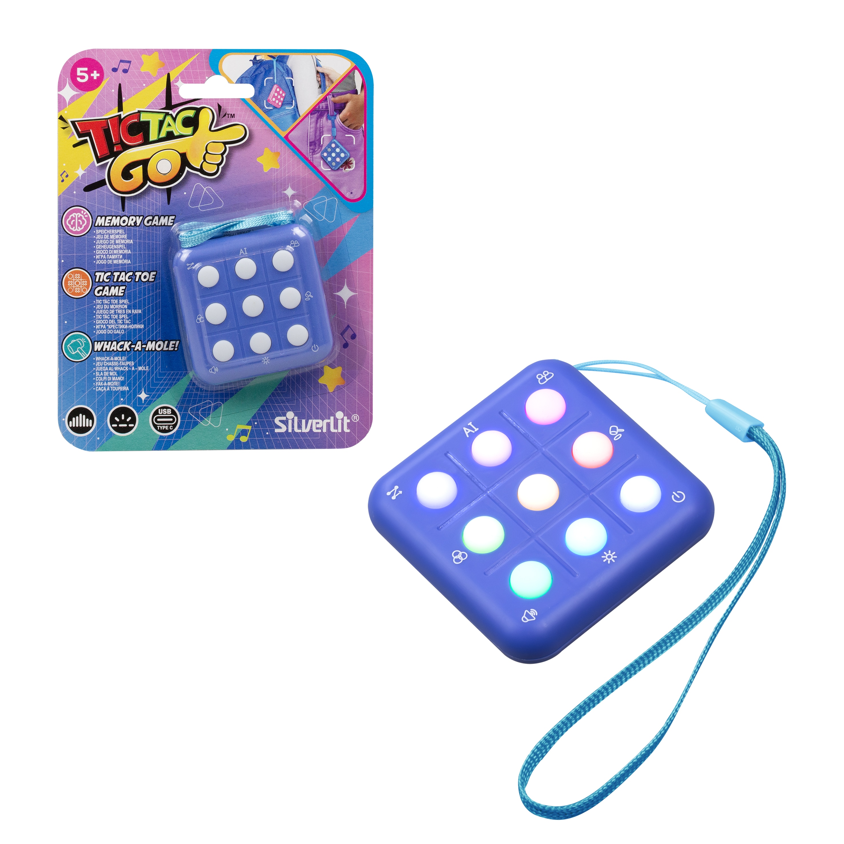 Tic Tac Go er en supermorsom fidget-leke med lysende LED-knapper og fem spill som du kan ta med deg overalt. Utfordre en venn i Tic Tac Toe, test hukommelsen i Memory Game eller se hvor raske refleksene dine er i Whack-a-Mole. Når du vil roe ned litt, kan du slå på Colour Mode og få kule lysmønstre som lyser opp i hånden.