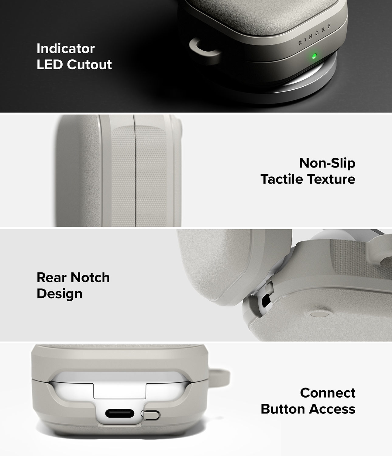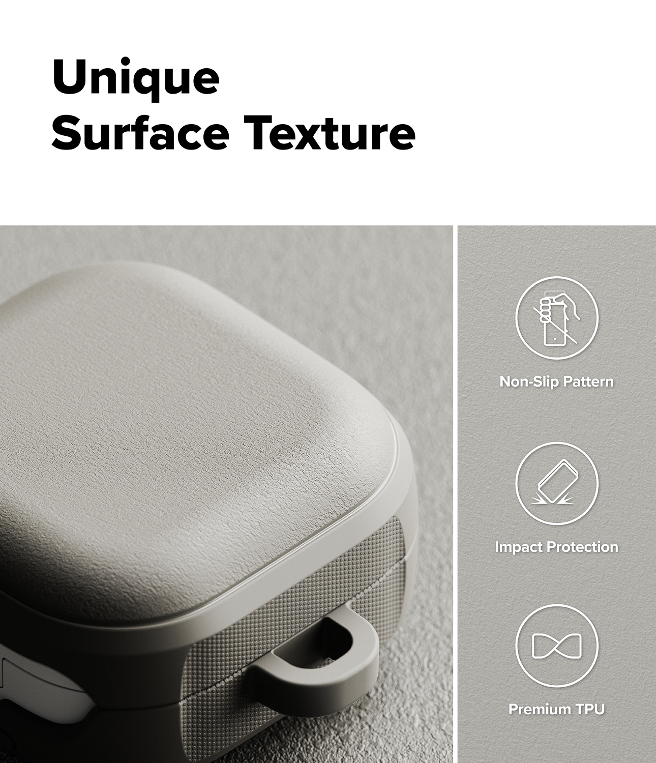 Gi din Samsung Galaxy Buds 4 litt ekstra stil med dette tøffe dekselet fra Ringke! Utstyrt med MagSafe og en karabinkrok er dette dekselet klart for å bli med på alle eventyr. Det har et stilig design og beskytter enheten din som en ekte helt. Det fleksible og slitesterke TPU-materialet med sin matte, granulære overflate føles godt å holde i og holder både fingeravtrykk og glatte situasjoner unna.