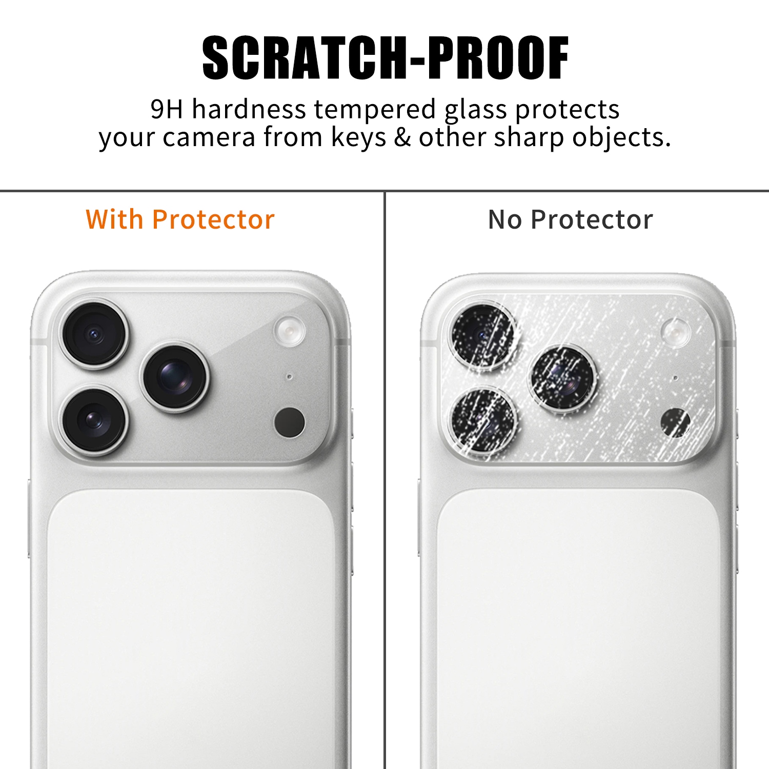 Kameralinsebeskytter i herdet glass til Apple iPhone 17 Pro som hjelper kameraet ditt med å holde seg pent og klart for action. Beskytter effektivt mot riper, støt og daglig slitasje. Den heldekkende beskyttelsen omslutter både linser og kamerahus, og når den først er på plass, er den knapt synlig.