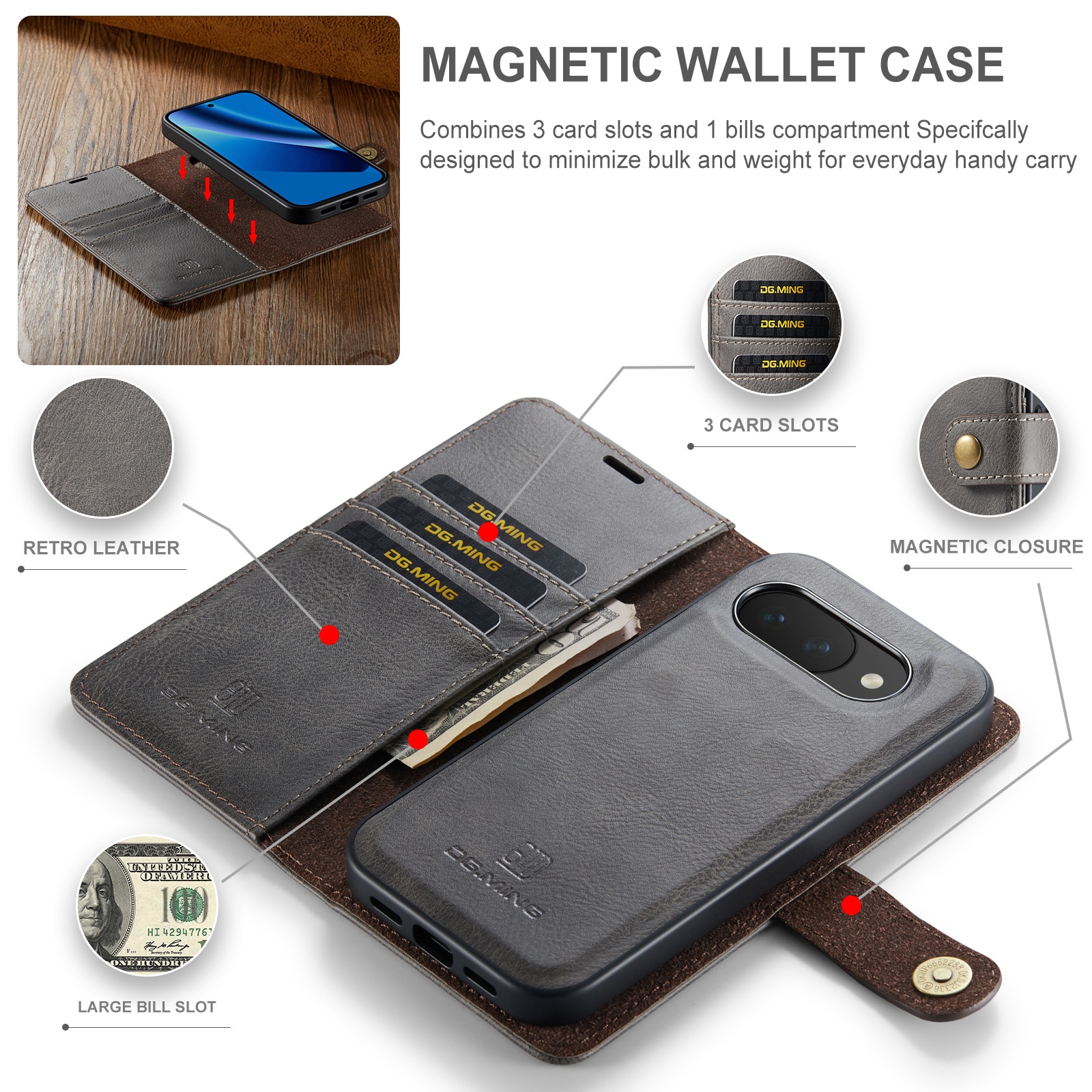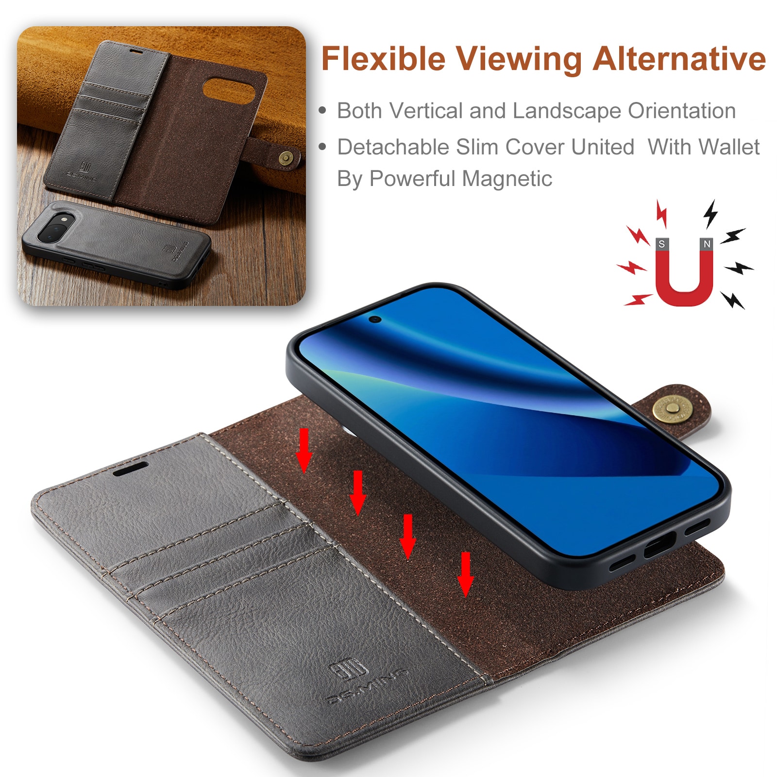 Sjekk ut vårt smarte etui med avtakbart magnetdeksel til Google Pixel 10a fra DG.MING. Dette etuiet kombinerer klassisk stil med praktisk funksjonalitet. Med det avtakbare dekselet kan du enkelt ta ut mobilen fra etuiet når du er hjemme eller på jobb, uten å måtte ha med hele etuiet.