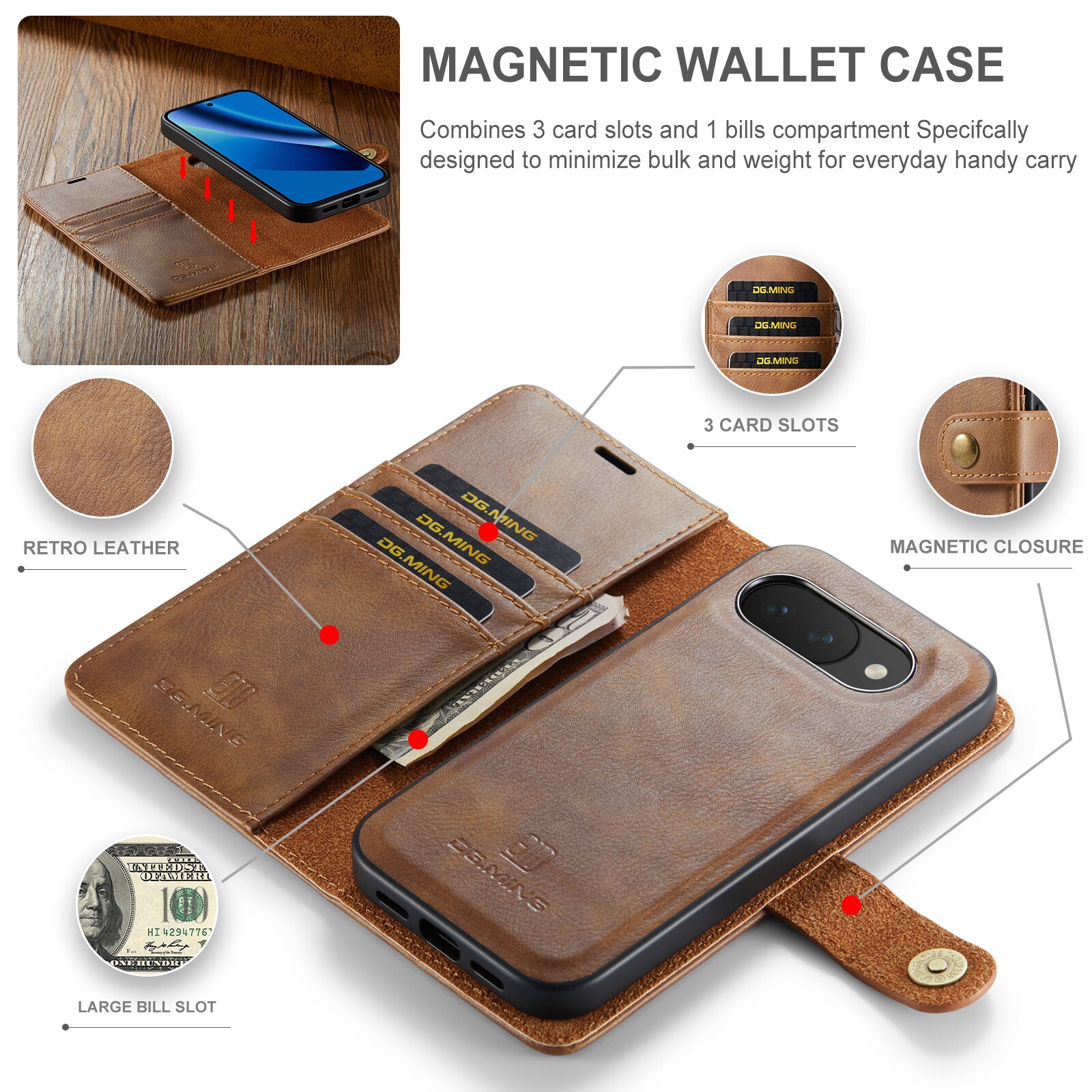 Sjekk ut vårt smarte etui med avtakbart magnetdeksel til Google Pixel 10a fra DG.MING. Dette etuiet kombinerer klassisk stil med praktisk funksjonalitet. Med det avtakbare dekselet kan du enkelt ta ut mobilen fra etuiet når du er hjemme eller på jobb, uten å måtte ha med hele etuiet.