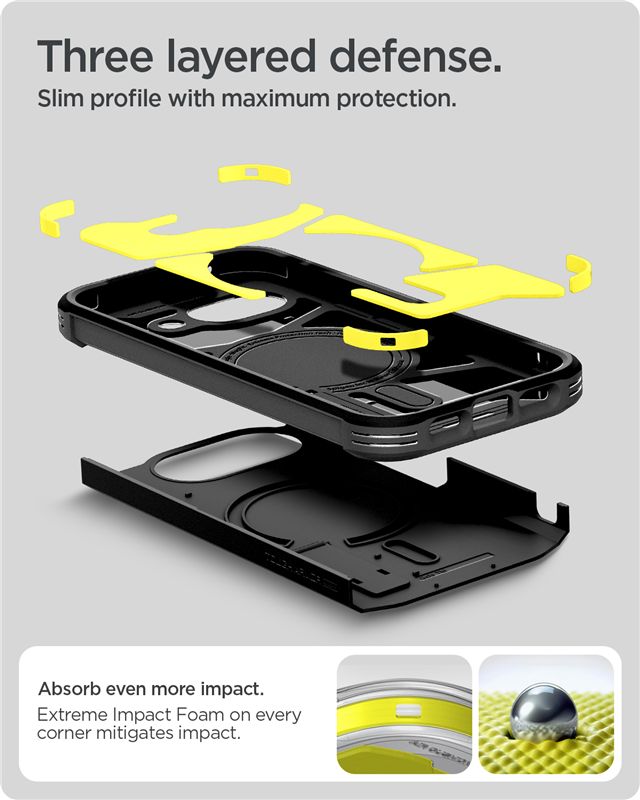 Med full MagSafe-støtte fungerer dekselet perfekt med MagSafe-ladere og annet smart tilbehør – bare klikk på plass og kjør. Innsiden består av fleksibel TPU med Spigens Air Cushion Technology i hjørnene for ekstra støtbeskyttelse, mens utsiden er et hardt polykarbonatdeksel som gir et stabilt og trygt grep.