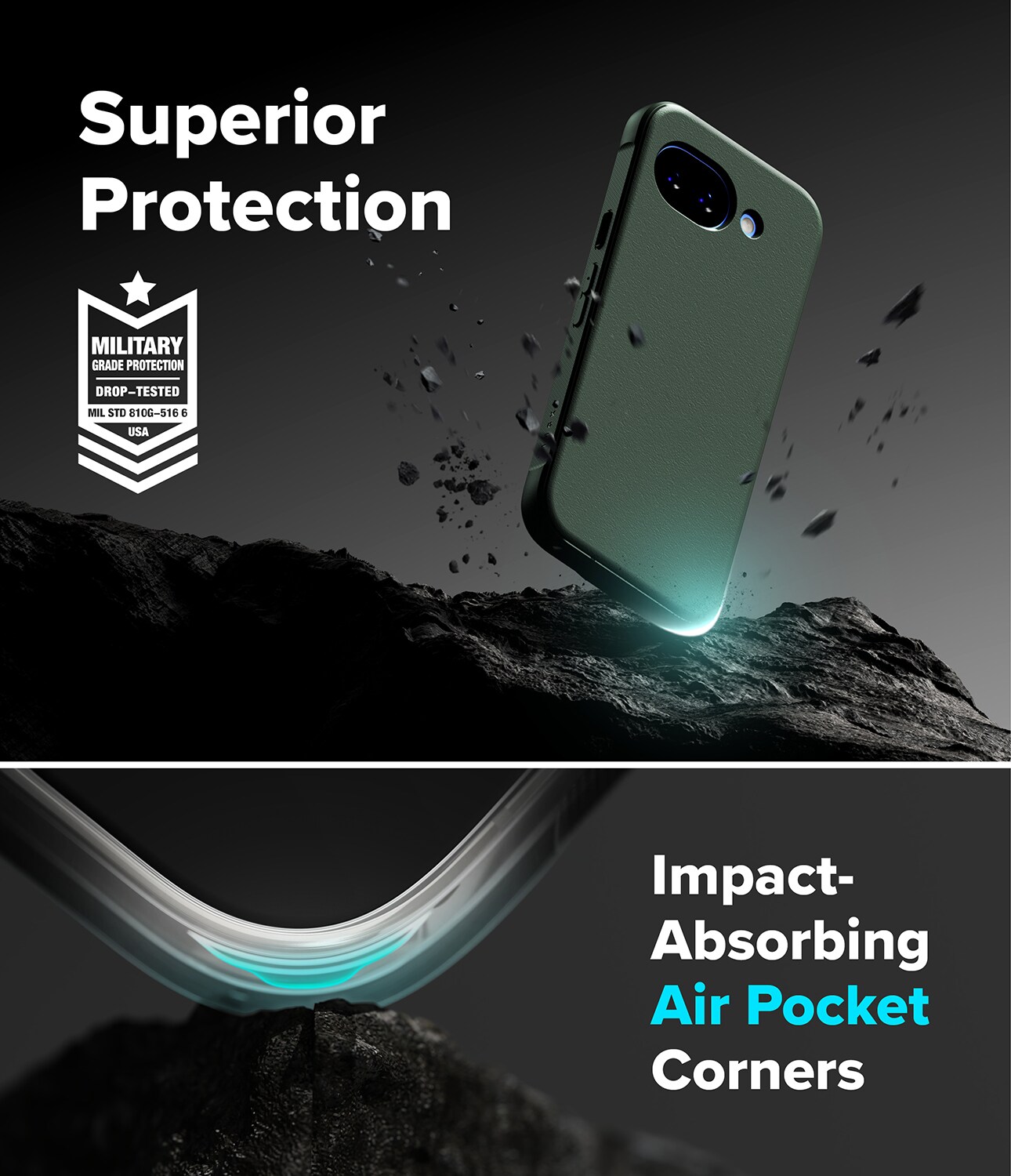 Dette er Onyx Case, det tøffe og stilige dekselet Google Pixel 10a fra Ringke. Dette er ikke bare et deksel; det er som en ridder i skinnende rustning med sitt elegante utseende og imponerende støtbeskyttelse. Tenk deg forsterkede hjørner som et ekstra skjold, hevede kanter som en vollgrav, og knapper så taktile at de føles som en hemmelig håndhilsen.