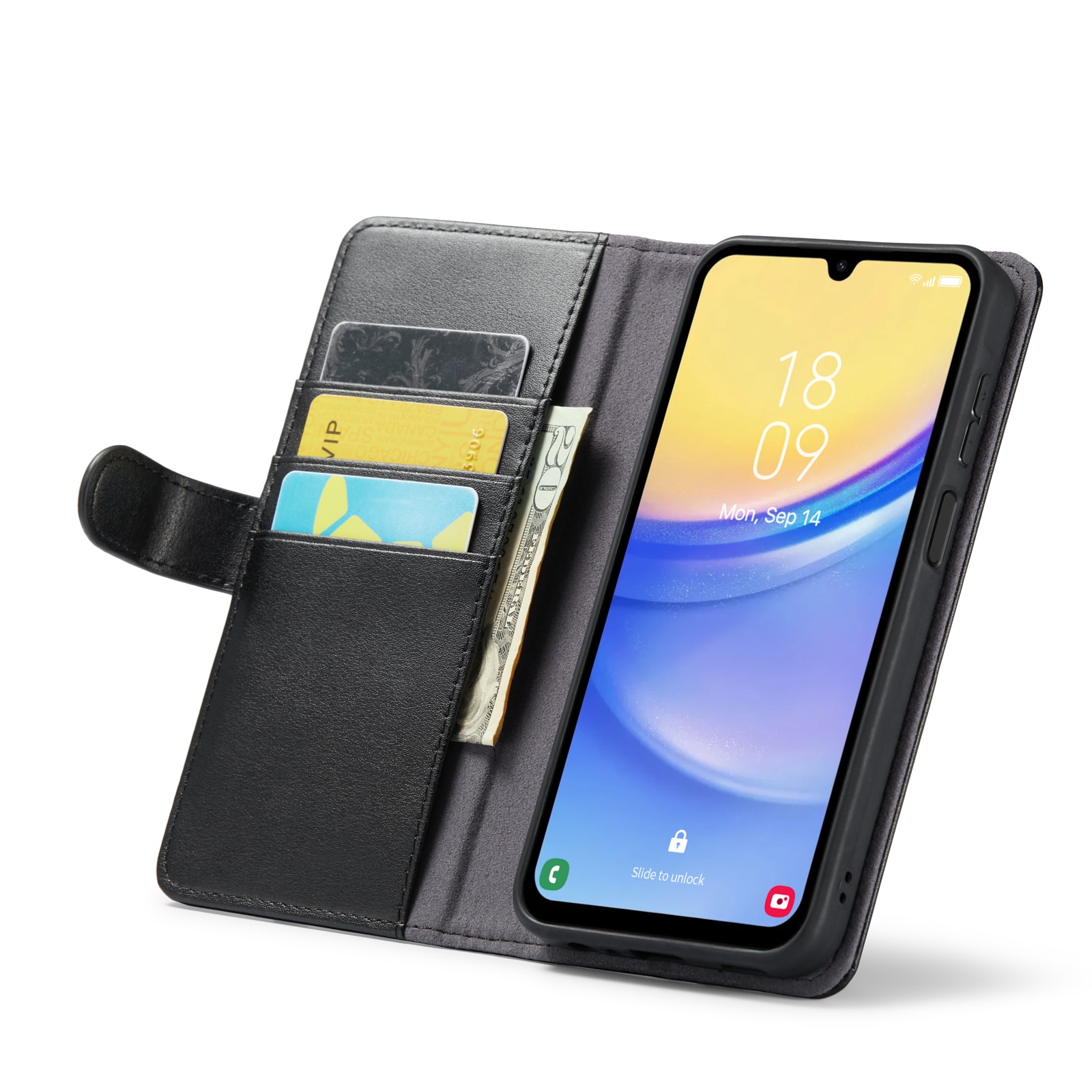 Keen på et stilig lær-etui til din Samsung Galaxy A15? Sjekk ut dette fra Mobique! Det er ikke bare fint, det er også superpraktisk. Etuiet dekker hele telefonen din, og inni lokket finner du en romslig lommebok. Du har plass til flere kort og litt kontanter, perfekt når du ikke vil drasse rundt på en lommebok.