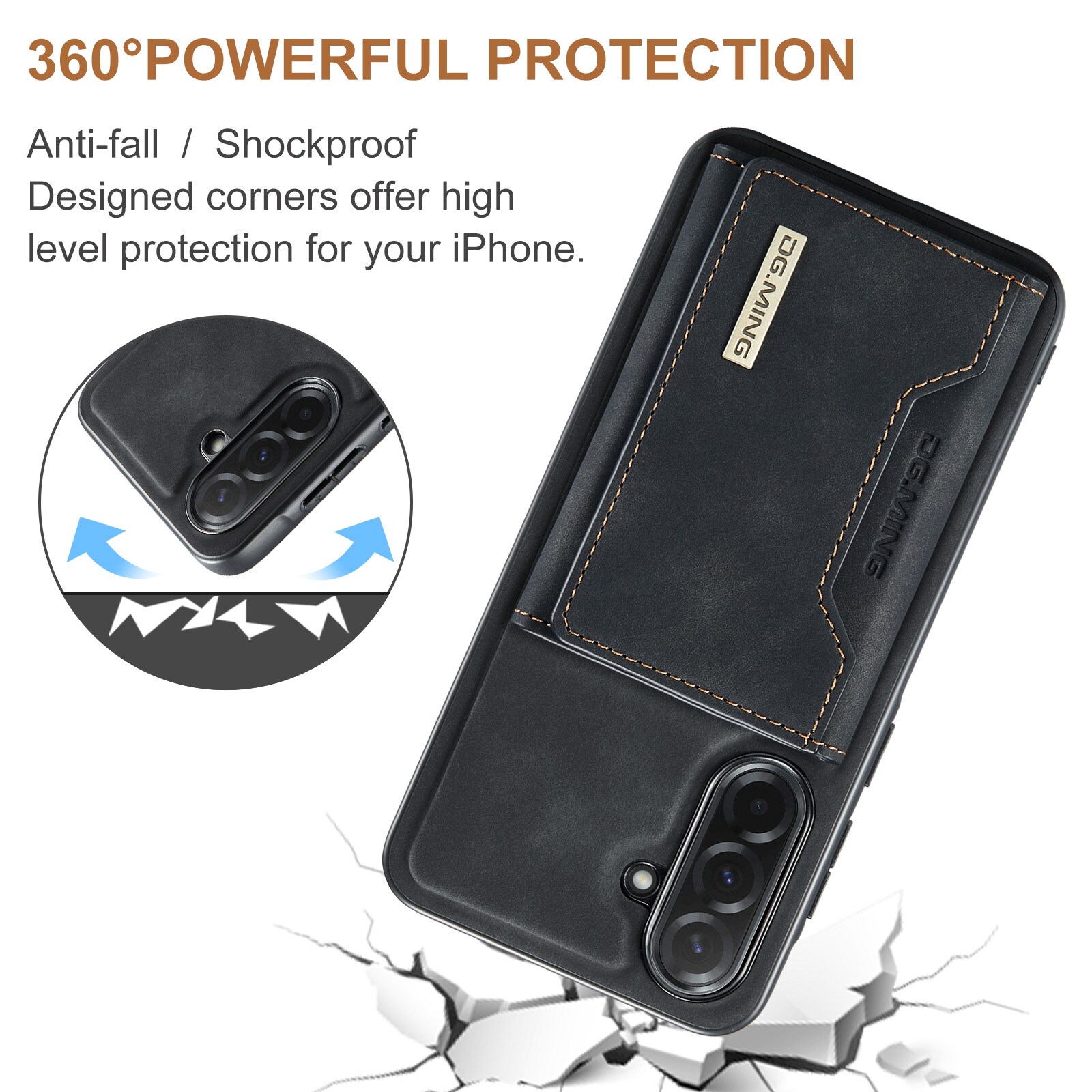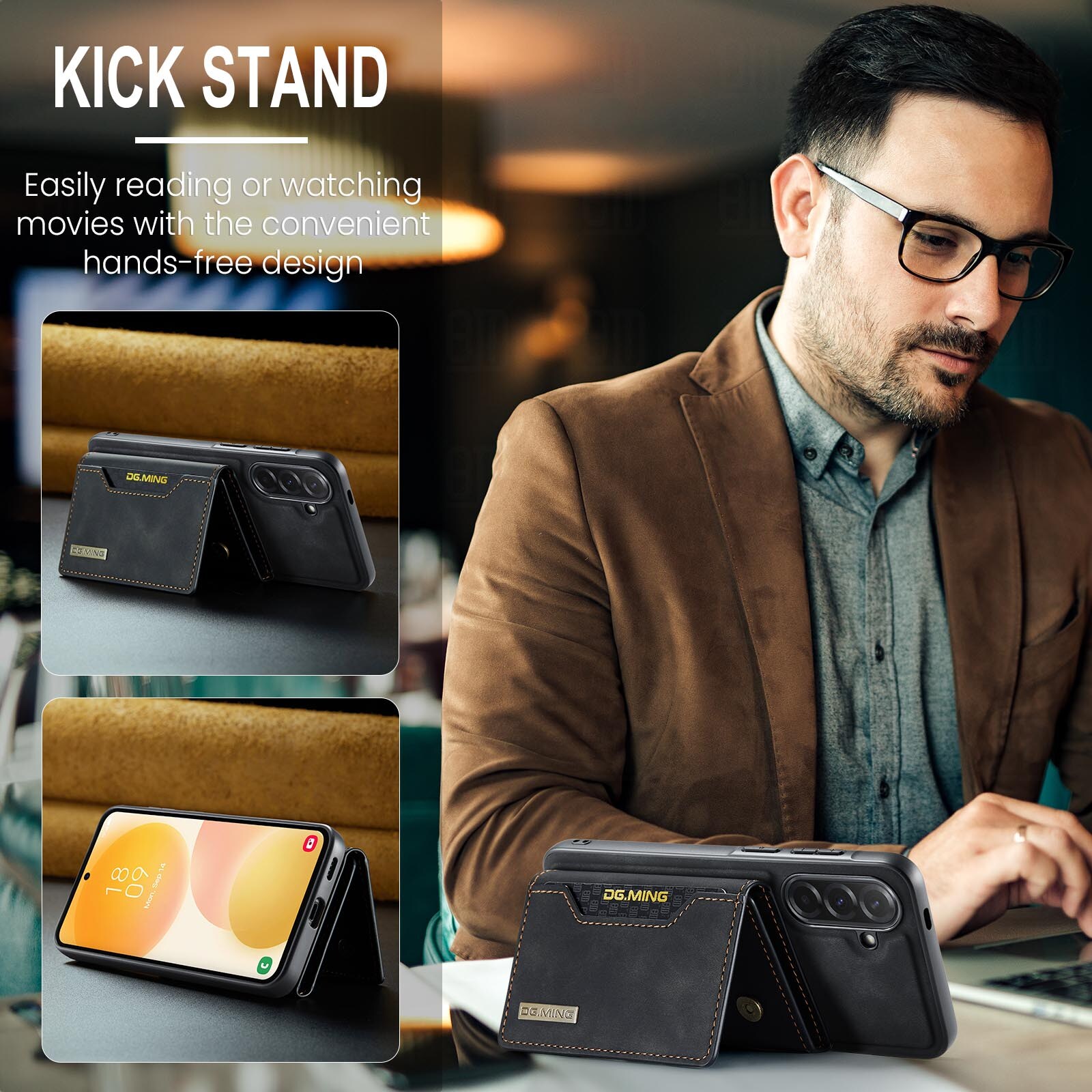 - Dobbeltfunksjon som både lommebok og stativ