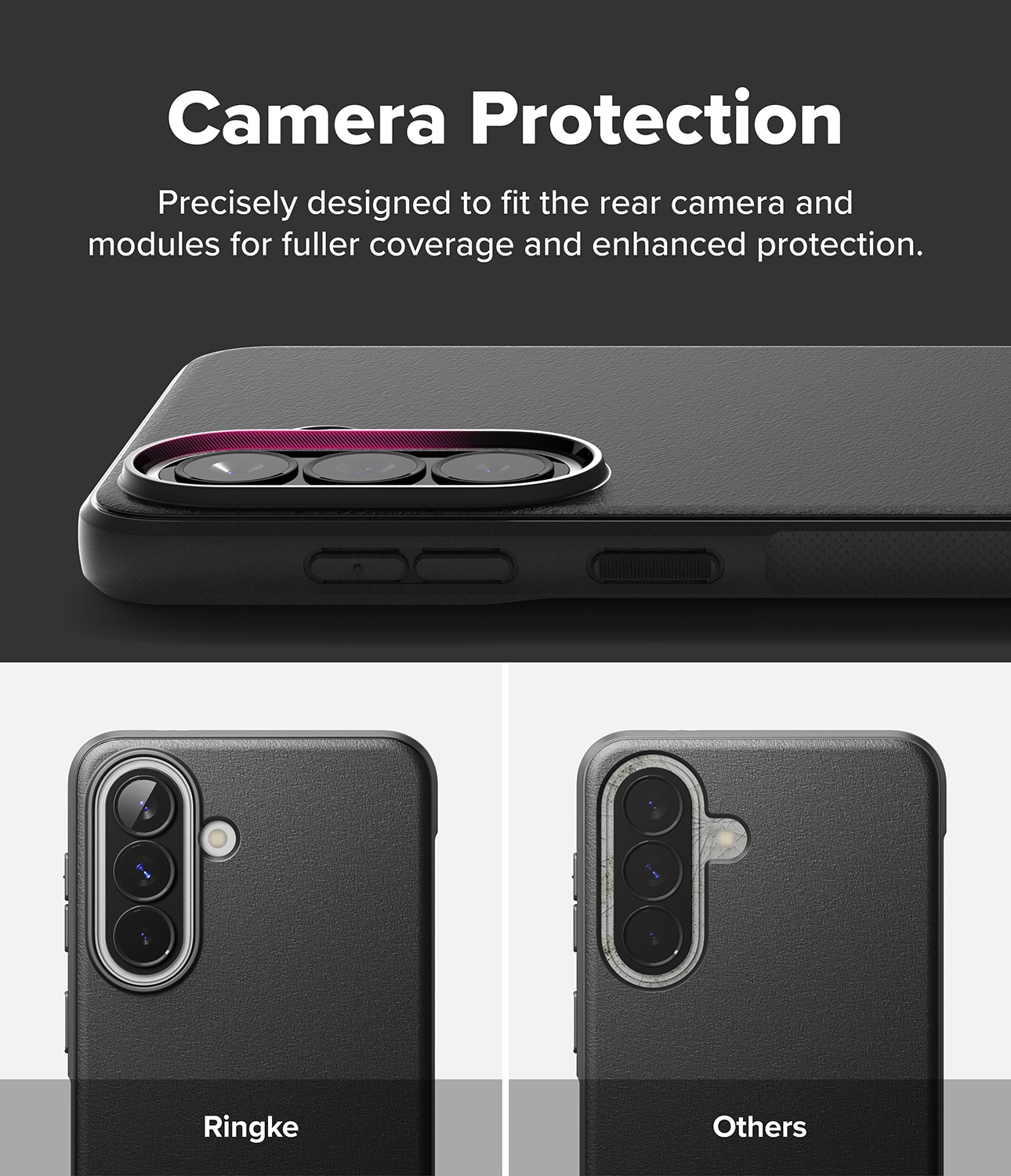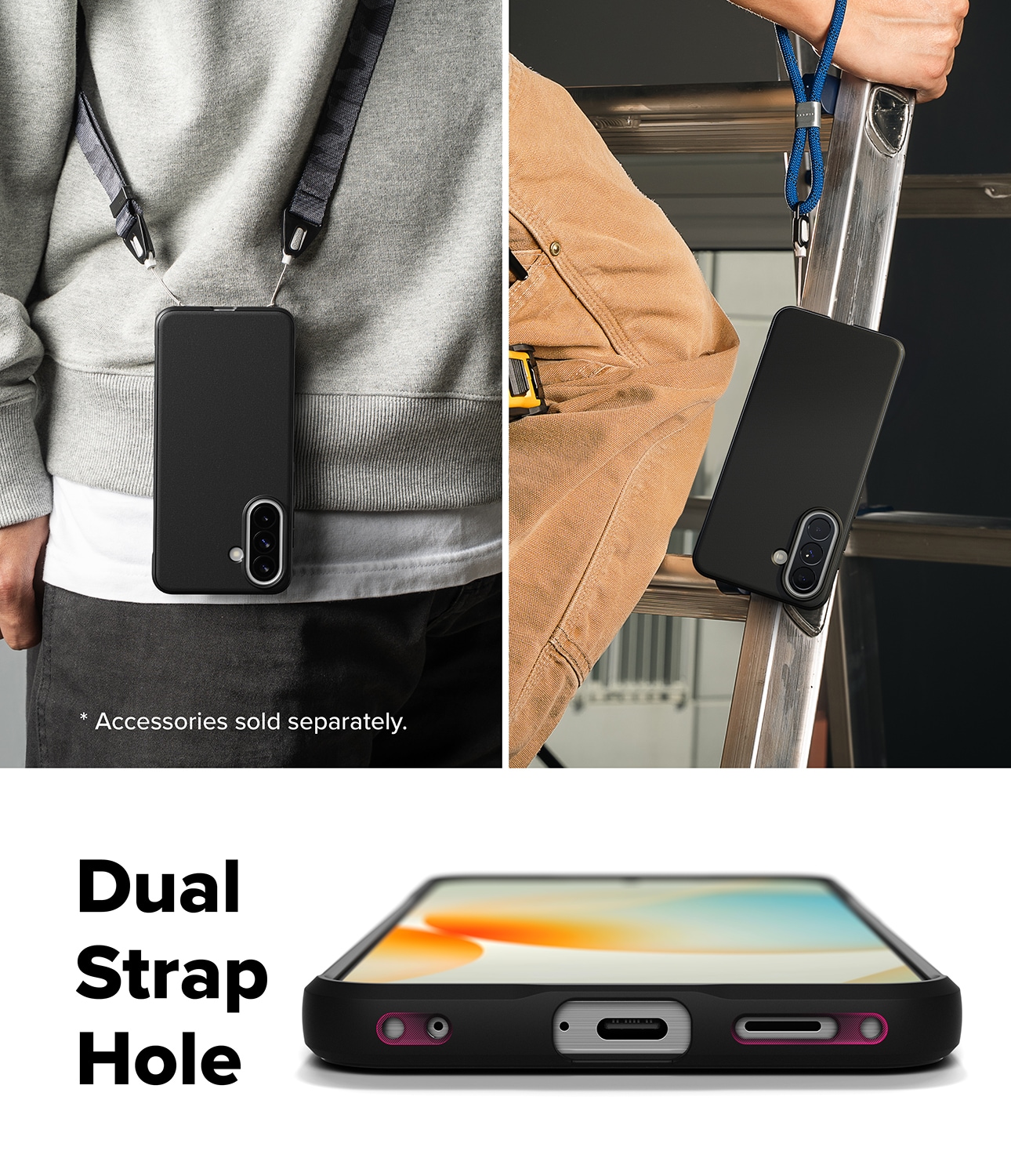Dette er Onyx Case, det tøffe og stilige dekselet Samsung Galaxy A57 fra Ringke. Dette er ikke bare et deksel; det er som en ridder i skinnende rustning med sitt elegante utseende og imponerende støtbeskyttelse. Tenk deg forsterkede hjørner som et ekstra skjold, hevede kanter som en vollgrav, og knapper så taktile at de føles som en hemmelig håndhilsen.