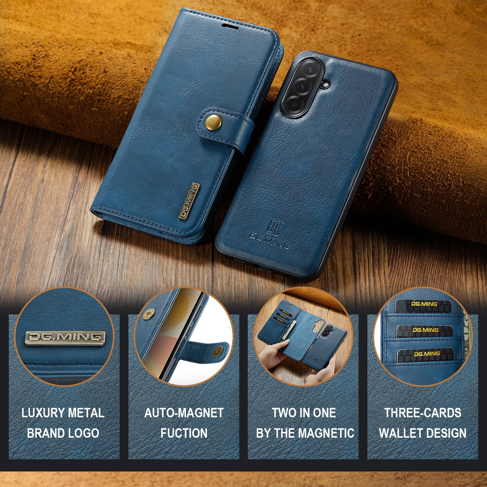 Sjekk ut vårt smarte etui med avtakbart magnetdeksel til Samsung Galaxy A57 fra DG.MING. Dette etuiet kombinerer klassisk stil med praktisk funksjonalitet. Med det avtakbare dekselet kan du enkelt ta ut mobilen fra etuiet når du er hjemme eller på jobb, uten å måtte ha med hele etuiet.
