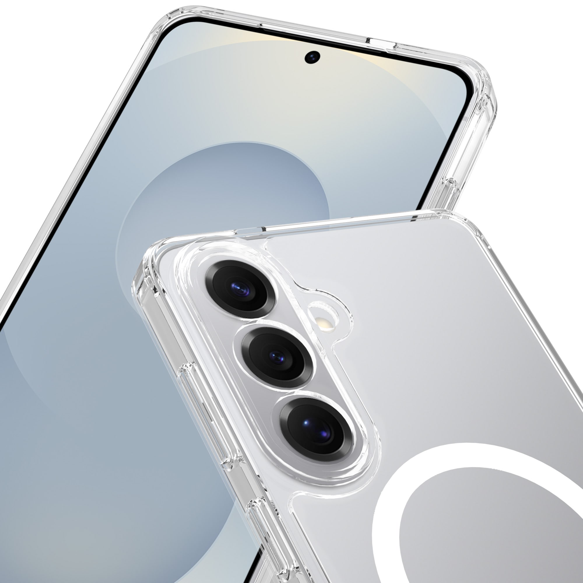 Den smarte magnetiske ringen på baksiden er ikke bare superpraktisk for å feste mobilen din til MagSafe-kompatible tilbehør som ladere og kortholdere, men kan også brukes som et mobilstativ. Perfekt for å se på videoer håndfritt!