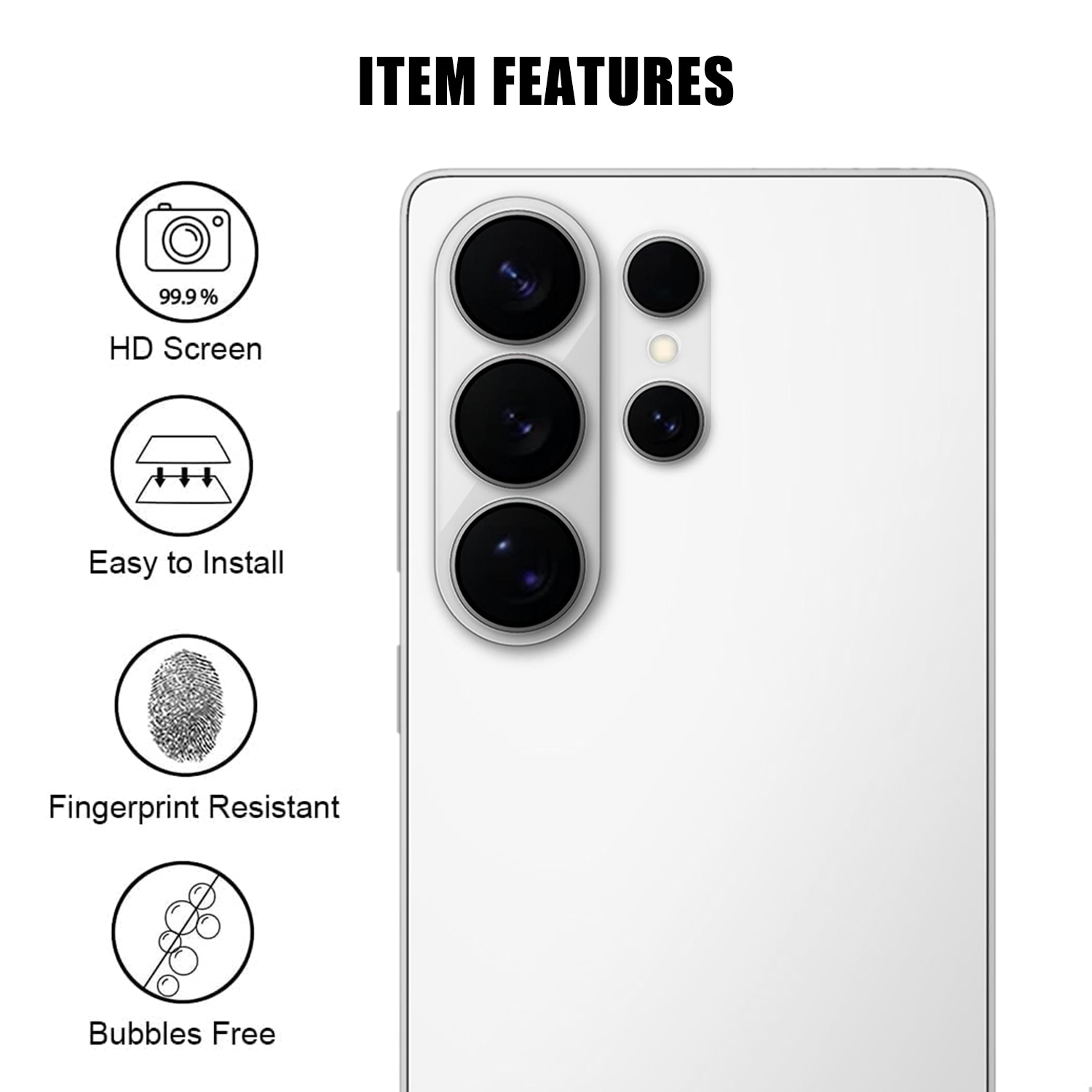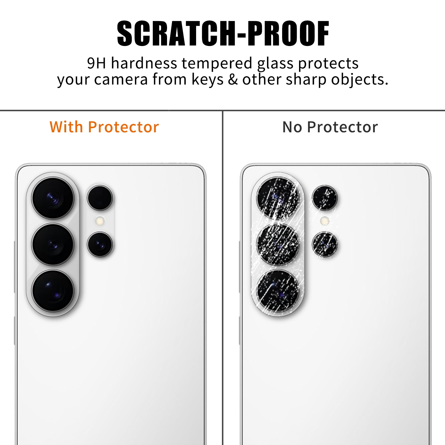 Kameralinsebeskytter i herdet glass til Samsung Galaxy S26 Ultra som hjelper kameraet ditt med å holde seg pent og klart for action. Beskytter effektivt mot riper, støt og daglig slitasje. Den heldekkende beskyttelsen omslutter både linser og kamerahus, og når den først er på plass, er den knapt synlig.
