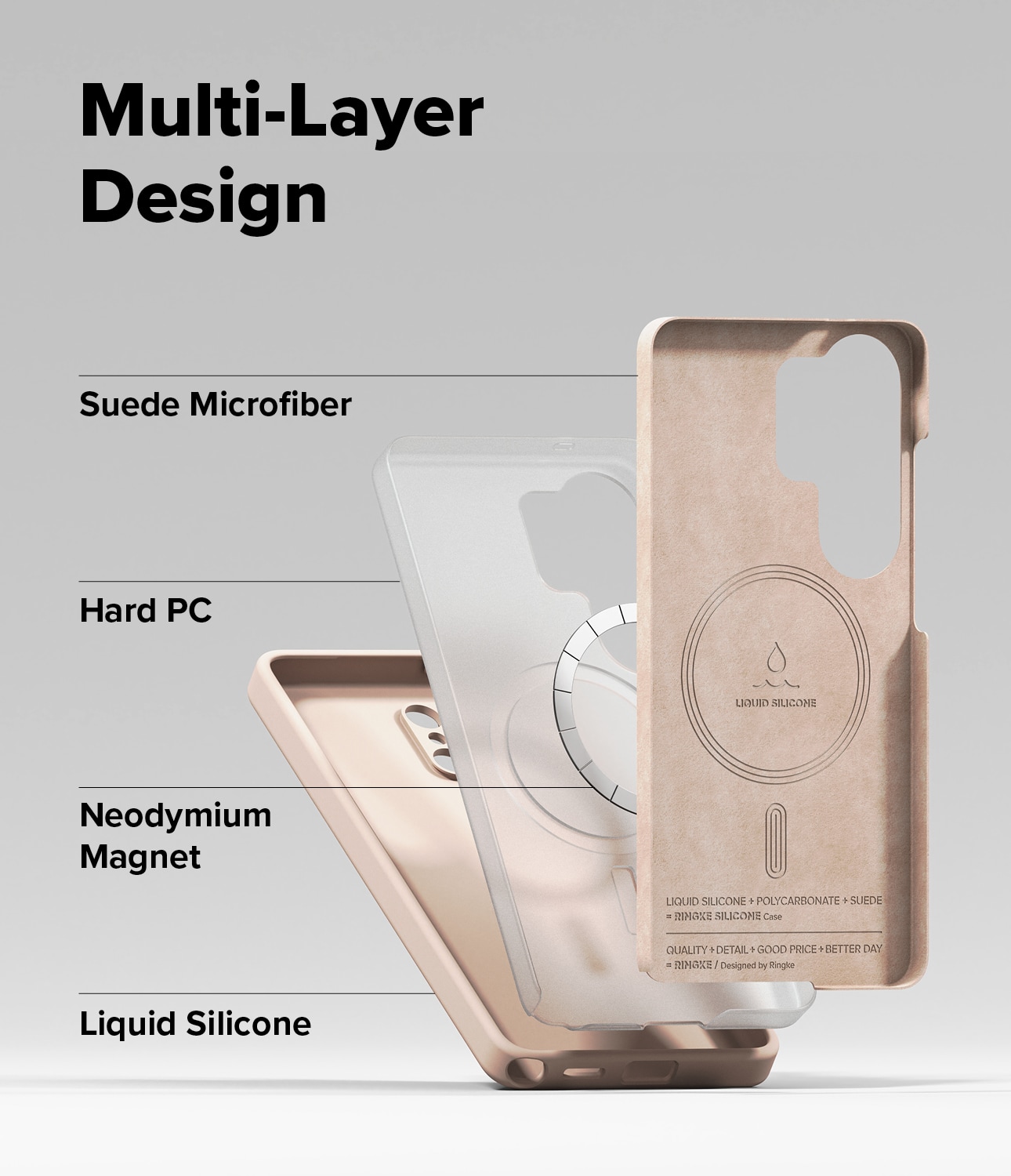 Her har vi en tredelt beskyttelsespakke: Ytterskallet i solid, grepvennlig silikon tar støyten, mens innsiden har en kjerne av hardplast for å takle støt, og et mykt mikrofiberfor på innsiden som er snillt mot mobilens bakside.