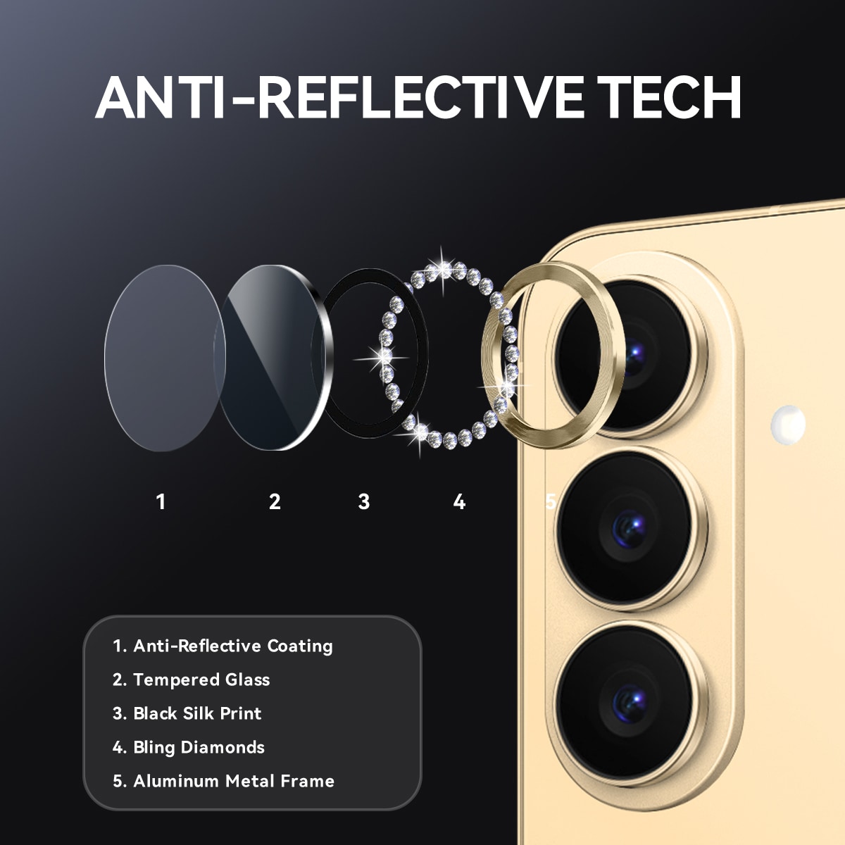 - Linsebeskytter i herdet glass med glitrende rhinestones