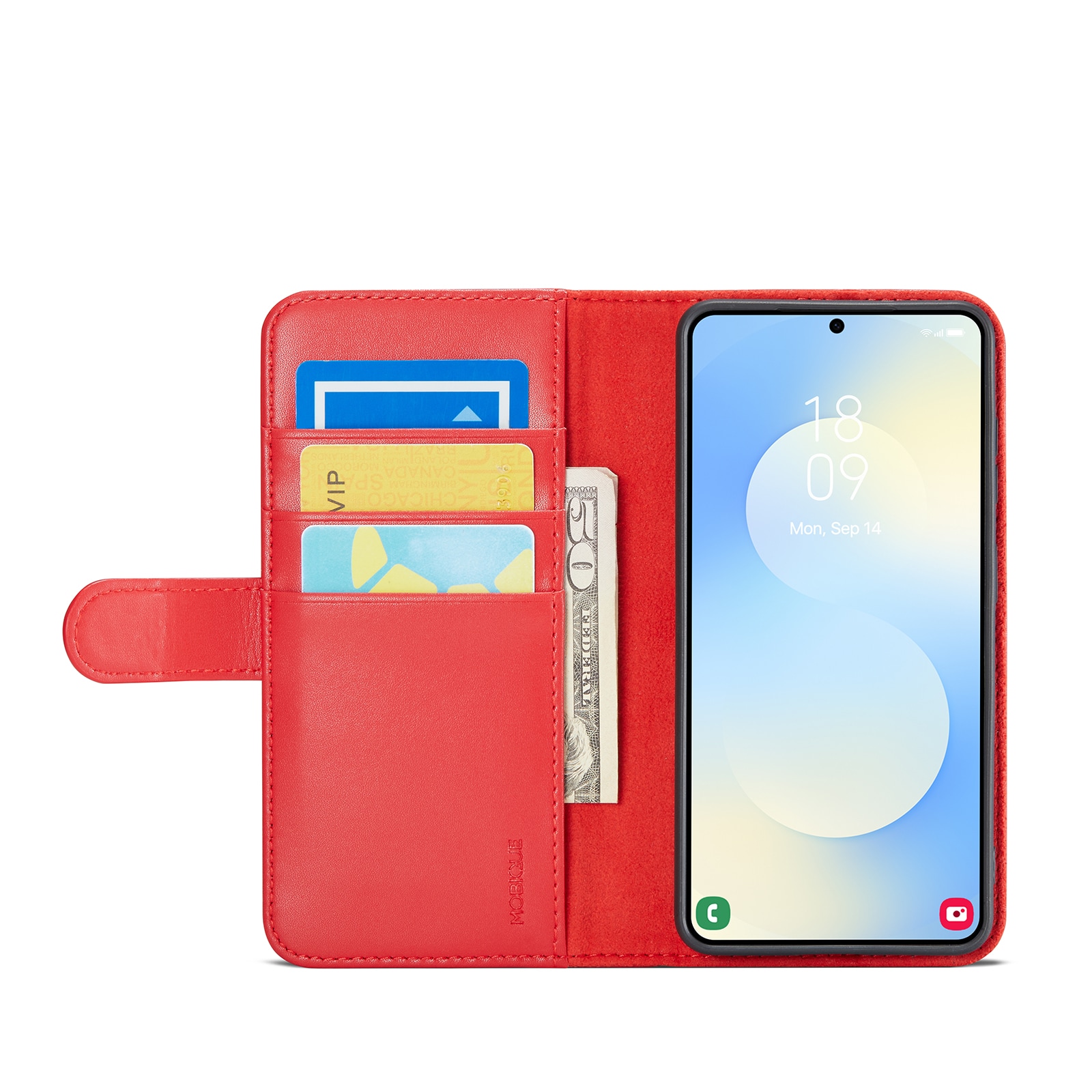 Keen på et stilig lær-etui til din Samsung Galaxy S26? Sjekk ut dette fra Mobique! Det er ikke bare fint, det er også superpraktisk. Etuiet dekker hele telefonen din, og inni lokket finner du en romslig lommebok. Du har plass til flere kort og litt kontanter, perfekt når du ikke vil drasse rundt på en lommebok.