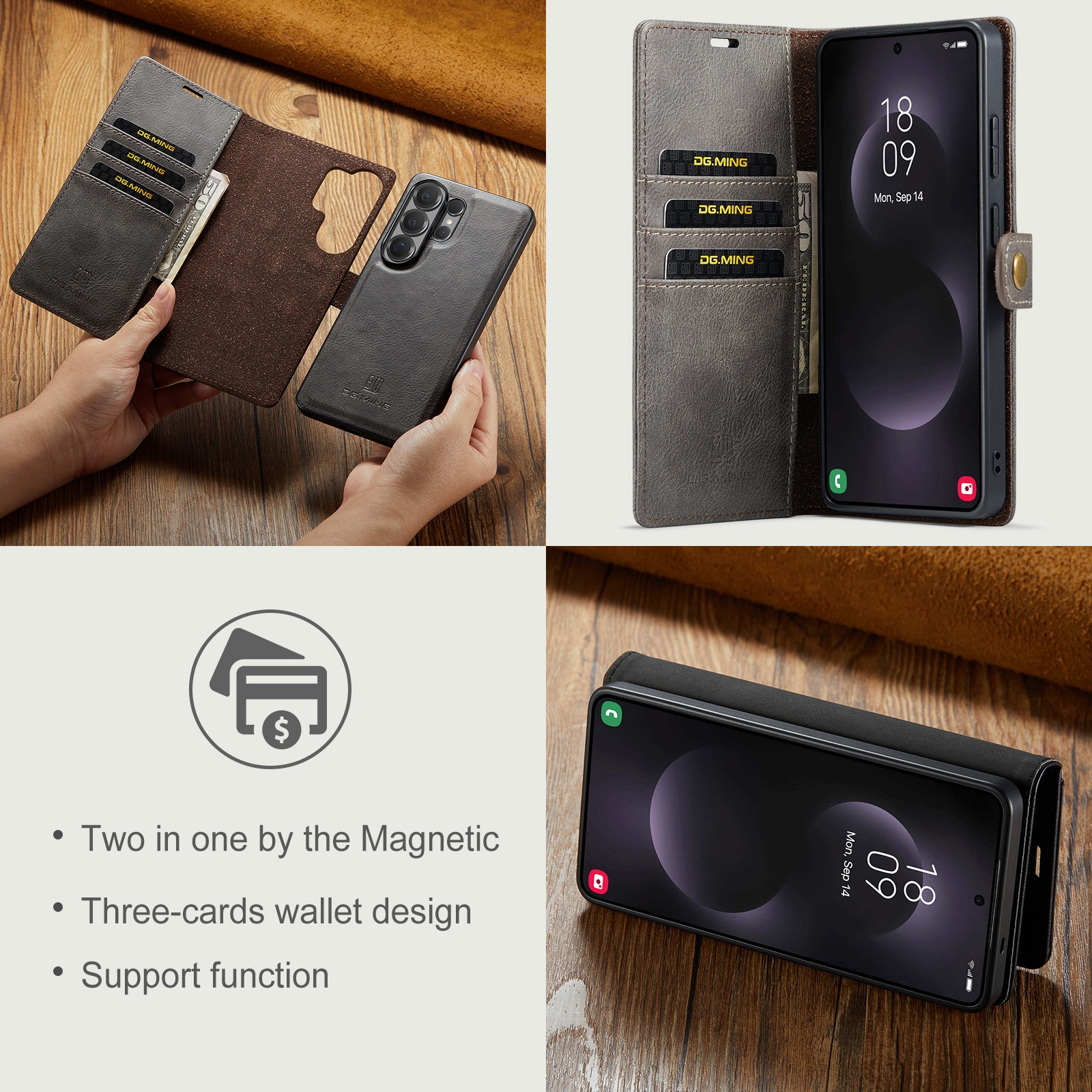 Sjekk ut vårt smarte etui med avtakbart magnetdeksel til Samsung Galaxy S26 Ultra fra DG.MING. Dette etuiet kombinerer klassisk stil med praktisk funksjonalitet. Med det avtakbare dekselet kan du enkelt ta ut mobilen fra etuiet når du er hjemme eller på jobb, uten å måtte ha med hele etuiet.