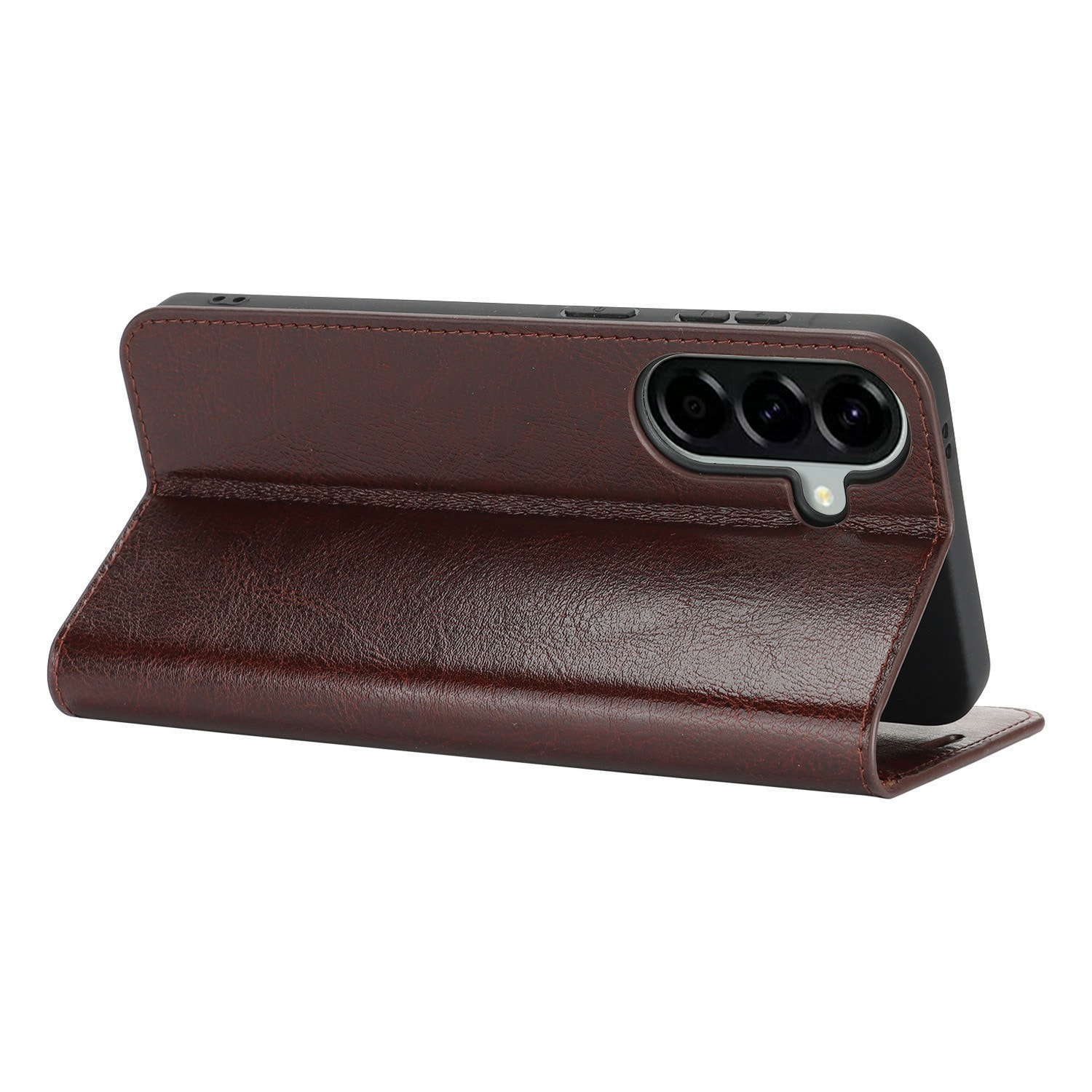 Gjør din Samsung Galaxy A57 enda stiligere med et praktisk mobiletui i ekte skinn! Det er slankt, men utrolig smart, med plass til tre kort og en seddel eller to, så du kan la lommeboken ligge hjemme. Mobilen klikker du enkelt på plass i det fleksible, innebygde dekselet som holder den trygt på plass.