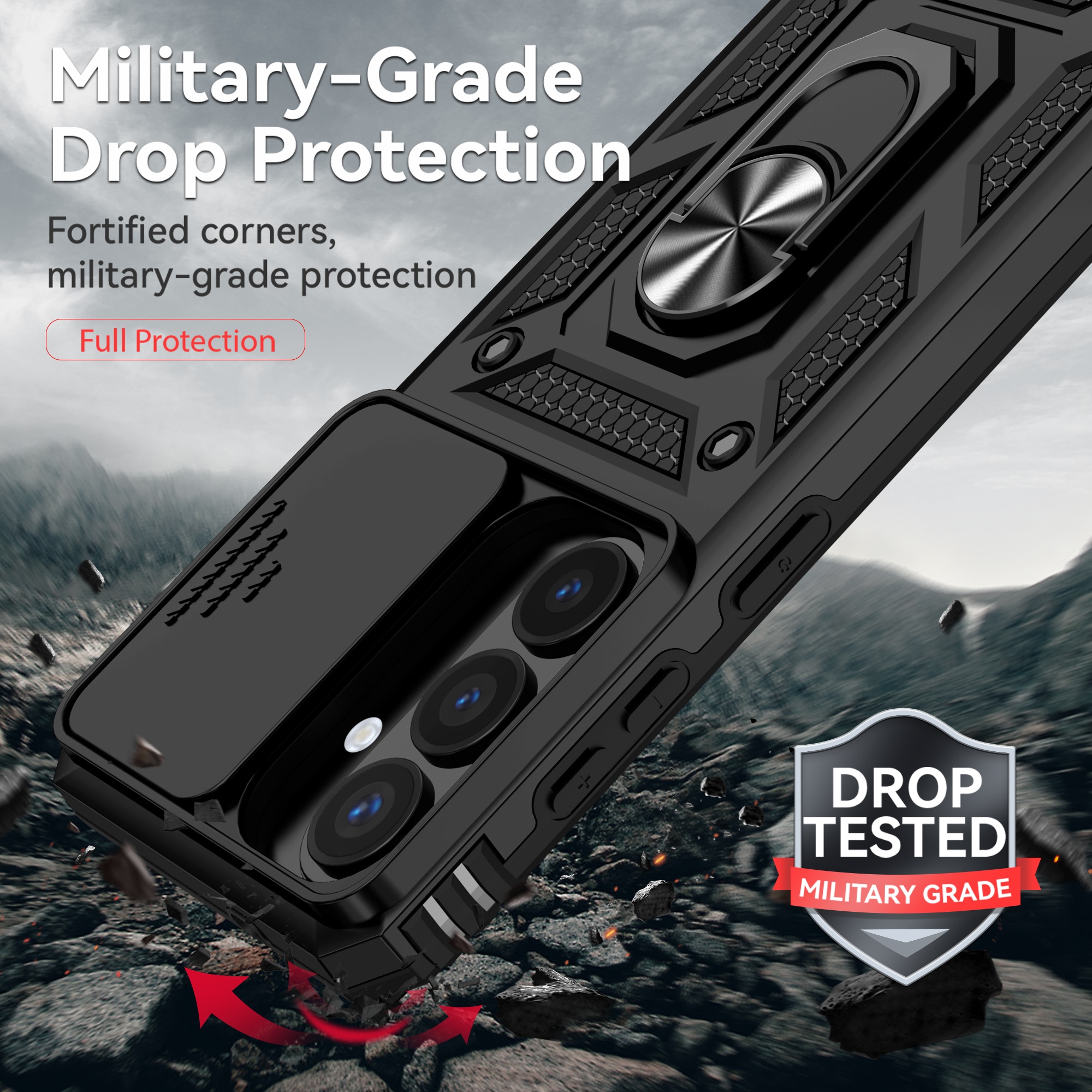 Sjekk ut vårt tøffe og robuste mobildeksel til Samsung Galaxy S26, det beskytter ikke bare mobilen din mot livets harde realiteter, det kommer også med en snurrende overraskelse på baksiden: en utfellbar ring! Denne magiske ringen gjør mer enn å bare se kul ut - den gir deg skikkelig godt grep når du er på farten og fungerer som et stativ når du skal nyte favorittseriene dine eller spille litt. Perfekt for deg som elsker å multitaske! Og som om det ikke var nok, får du også en ekstra bonus: et skyvbart kameralokk! Helt genialt for deg som lever et liv der kameralinsen trenger ekstra beskyttelse.