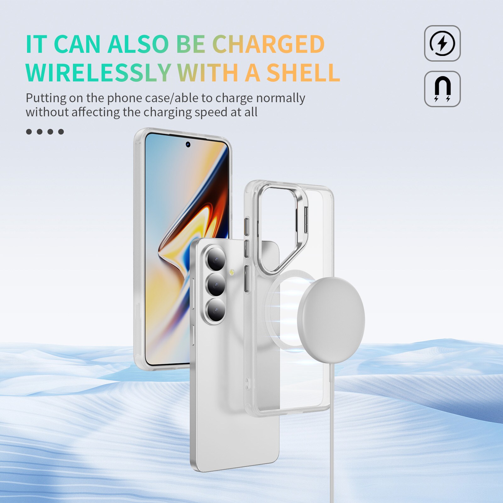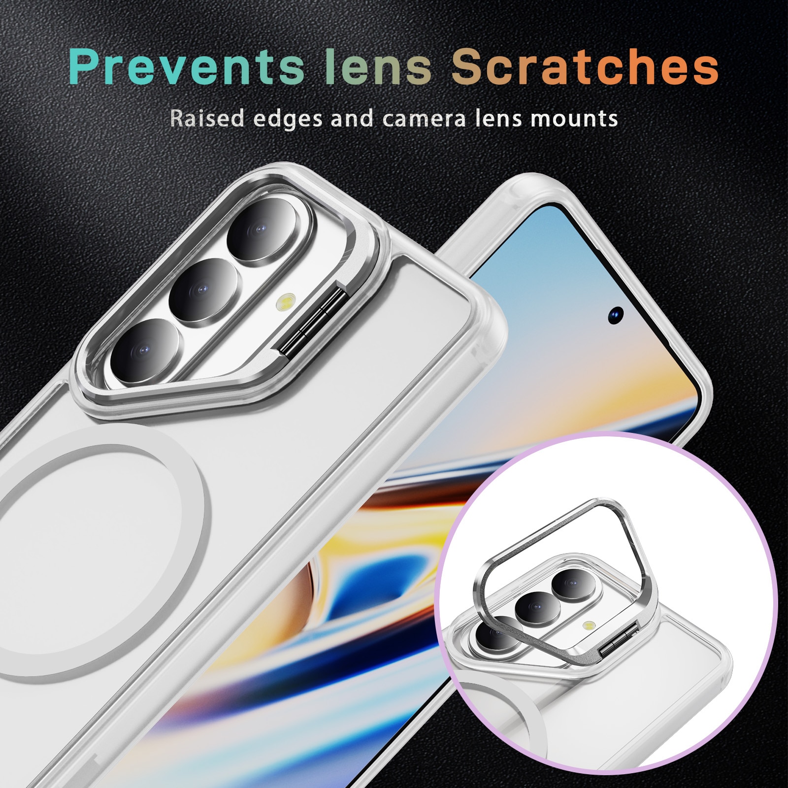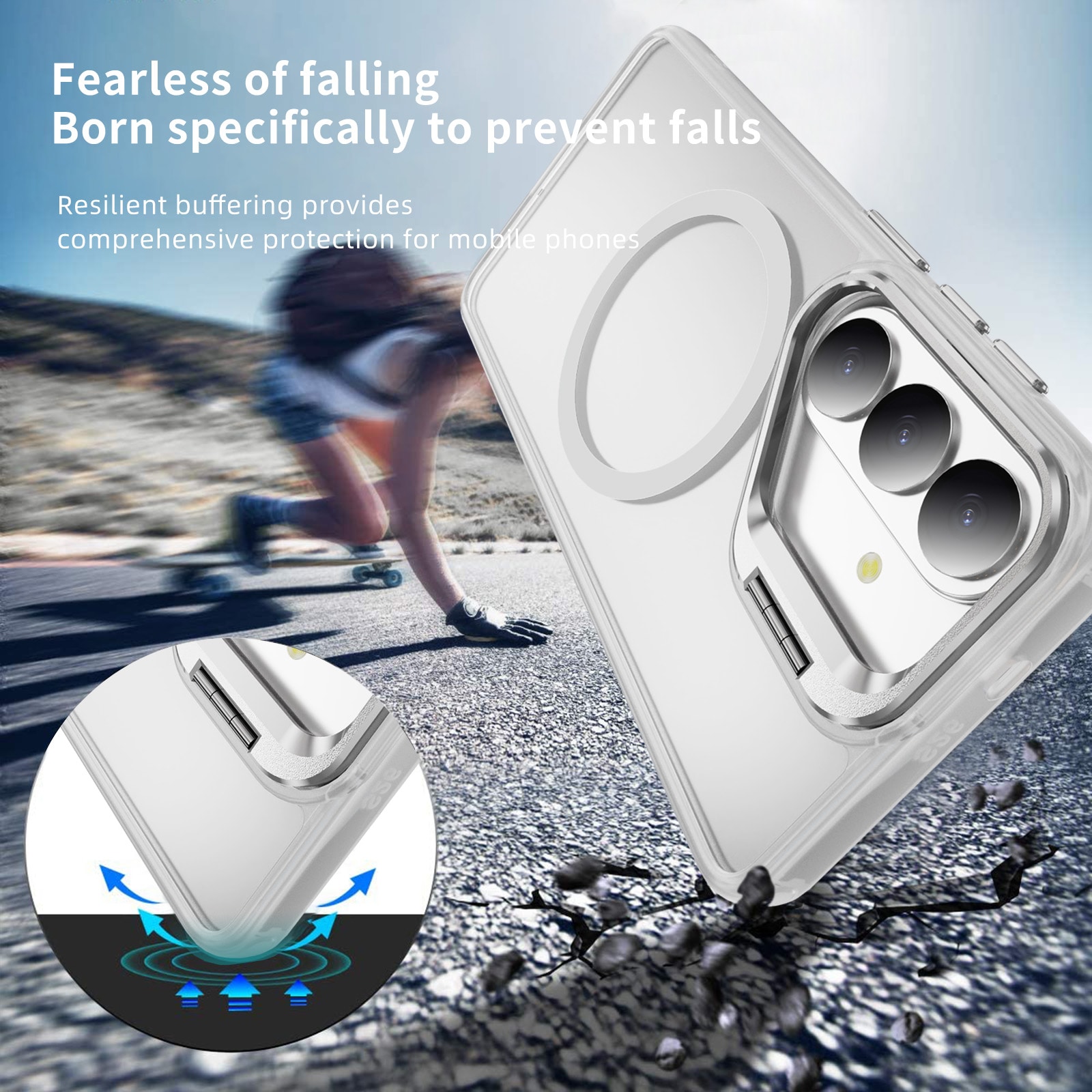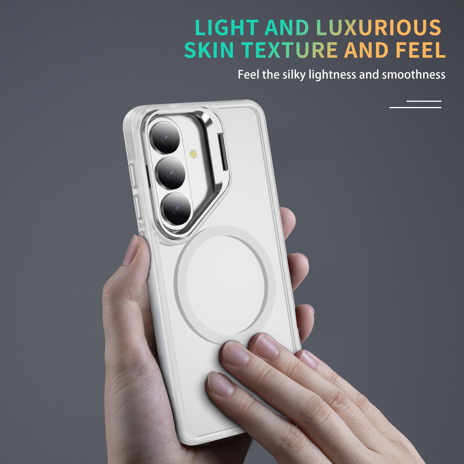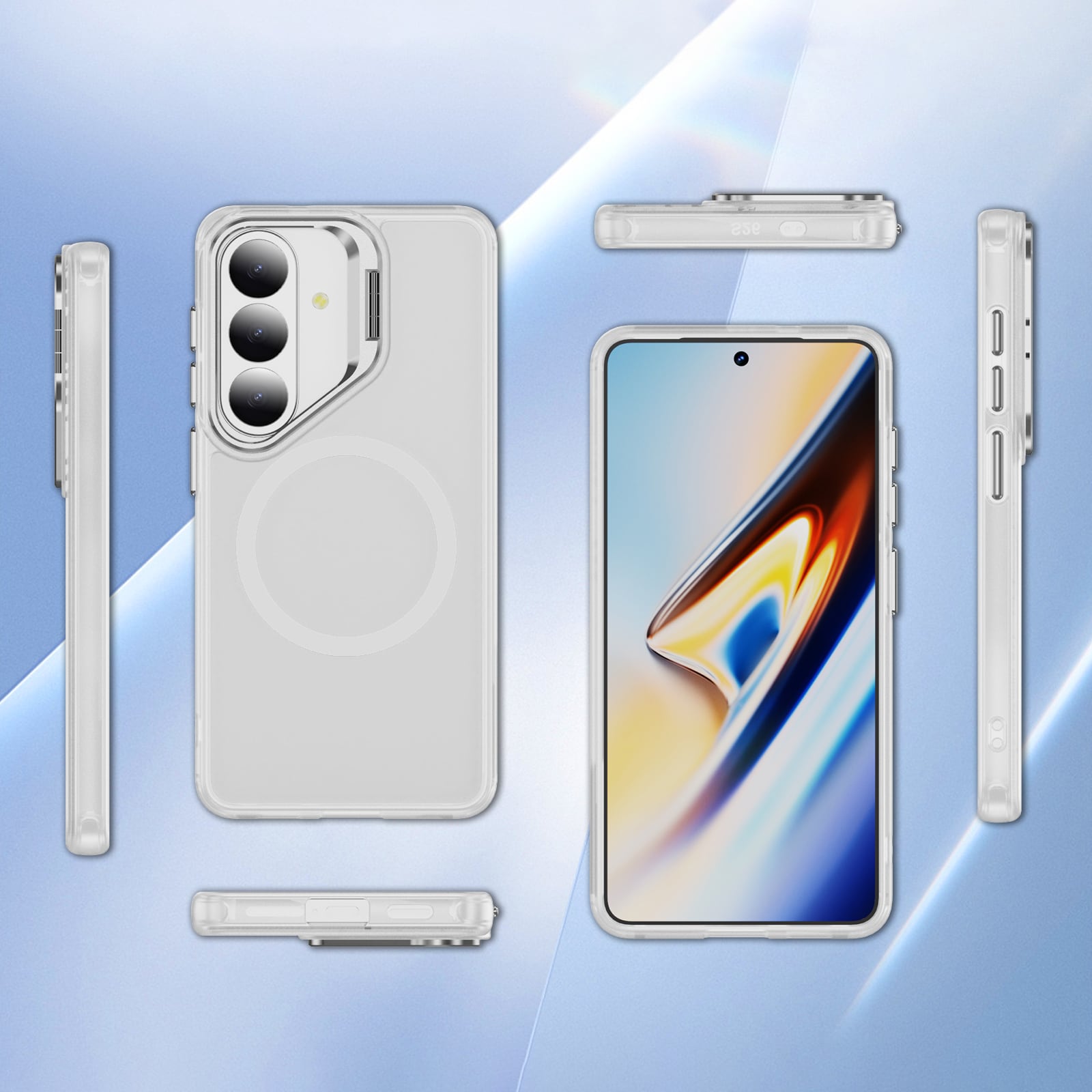 Sjekk ut dette hybriddekselet til din Samsung Galaxy S26 som ikke bare ser bra ut, men også er superpraktisk! Dette todelte vidunderet kombinerer en TPU-kjerne med et hardt plastdeksel, som gir deg den ultimate beskyttelsesboblen mot både små og store uhell. Men vent, det blir enda bedre! Dekselet er utstyrt med en metallramme rundt kameraet for å holde linsene dine trygge fra stygge støt og gir samtidig telefonen din en luksuriøs touch. I tillegg kan den lille rammen felles ut, og tada! Du har et praktisk stativ, perfekt for en serie-maraton.