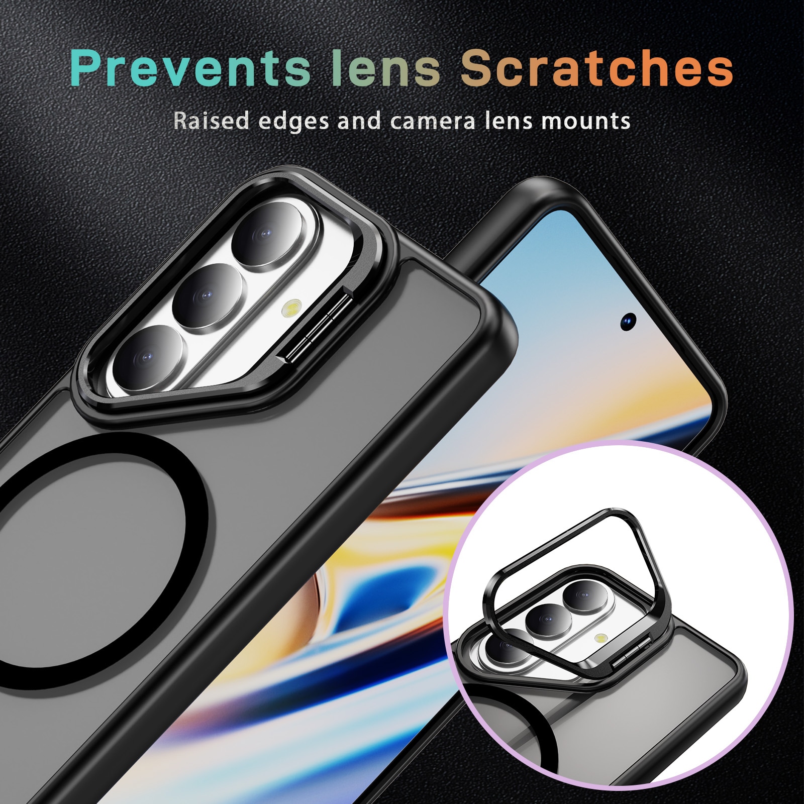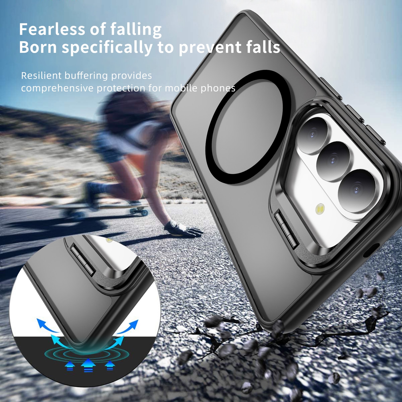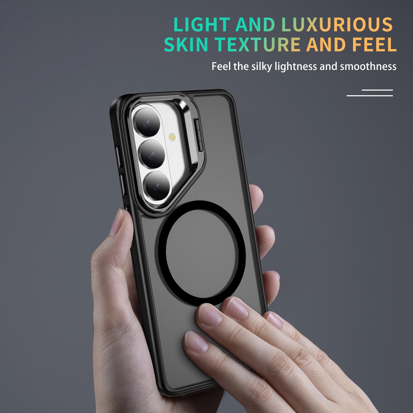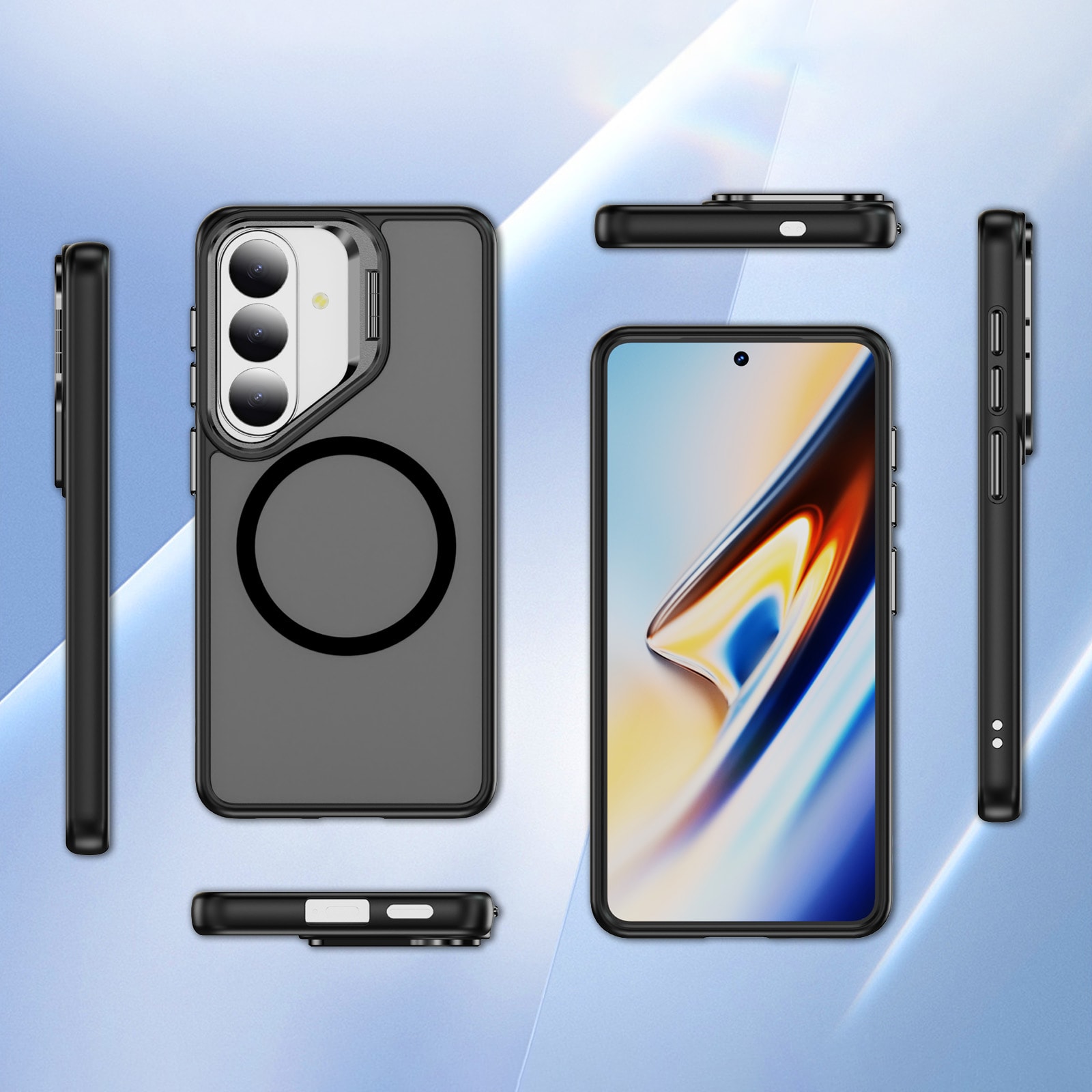 Sjekk ut dette hybriddekselet til din Samsung Galaxy S26 som ikke bare ser bra ut, men også er superpraktisk! Dette todelte vidunderet kombinerer en TPU-kjerne med et hardt plastdeksel, som gir deg den ultimate beskyttelsesboblen mot både små og store uhell. Men vent, det blir enda bedre! Dekselet er utstyrt med en metallramme rundt kameraet for å holde linsene dine trygge fra stygge støt og gir samtidig telefonen din en luksuriøs touch. I tillegg kan den lille rammen felles ut, og tada! Du har et praktisk stativ, perfekt for en serie-maraton.