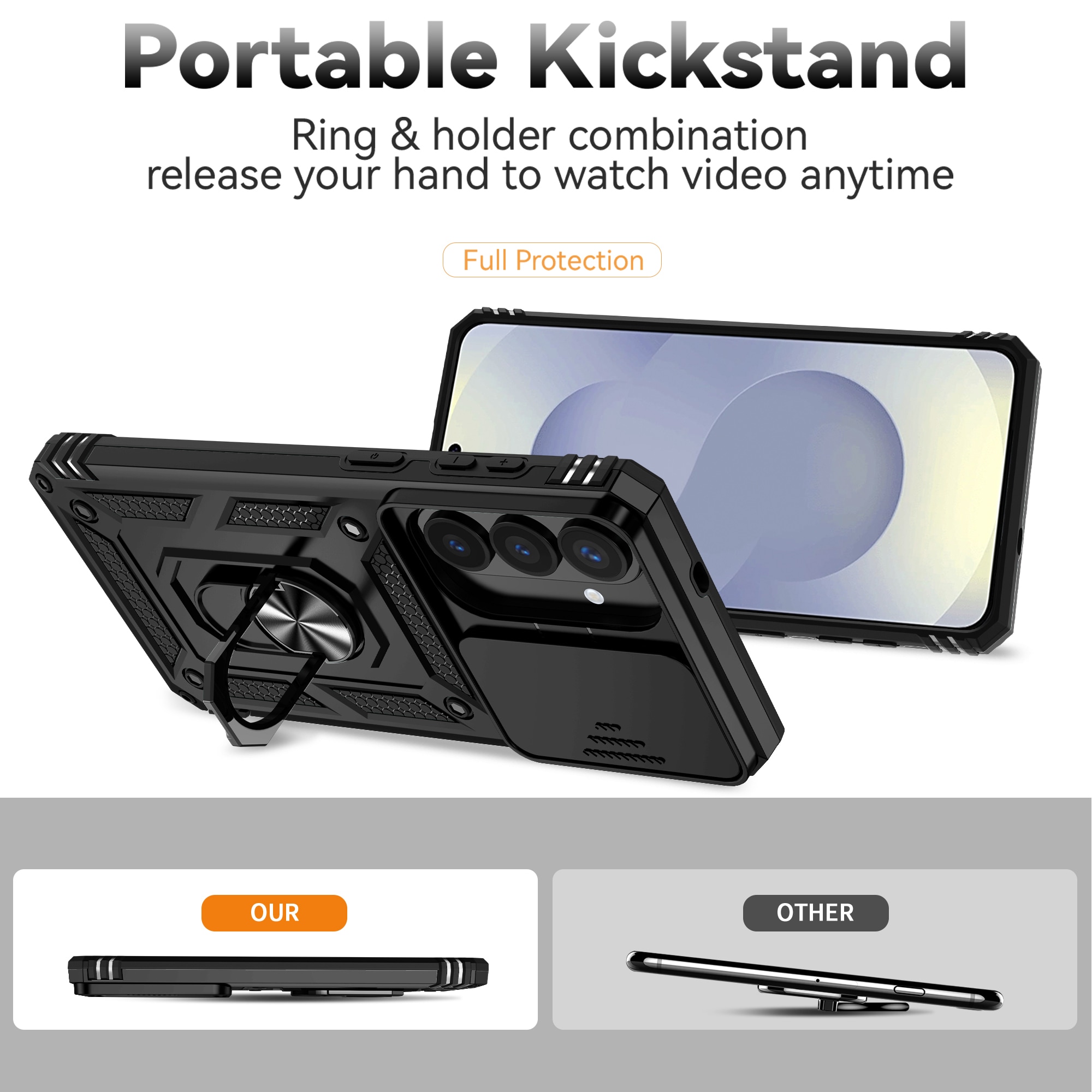 Sjekk ut vårt tøffe og robuste mobildeksel til Samsung Galaxy S26 Plus, det beskytter ikke bare mobilen din mot livets harde realiteter, det kommer også med en snurrende overraskelse på baksiden: en utfellbar ring! Denne magiske ringen gjør mer enn å bare se kul ut - den gir deg skikkelig godt grep når du er på farten og fungerer som et stativ når du skal nyte favorittseriene dine eller spille litt. Perfekt for deg som elsker å multitaske! Og som om det ikke var nok, får du også en ekstra bonus: et skyvbart kameralokk! Helt genialt for deg som lever et liv der kameralinsen trenger ekstra beskyttelse.