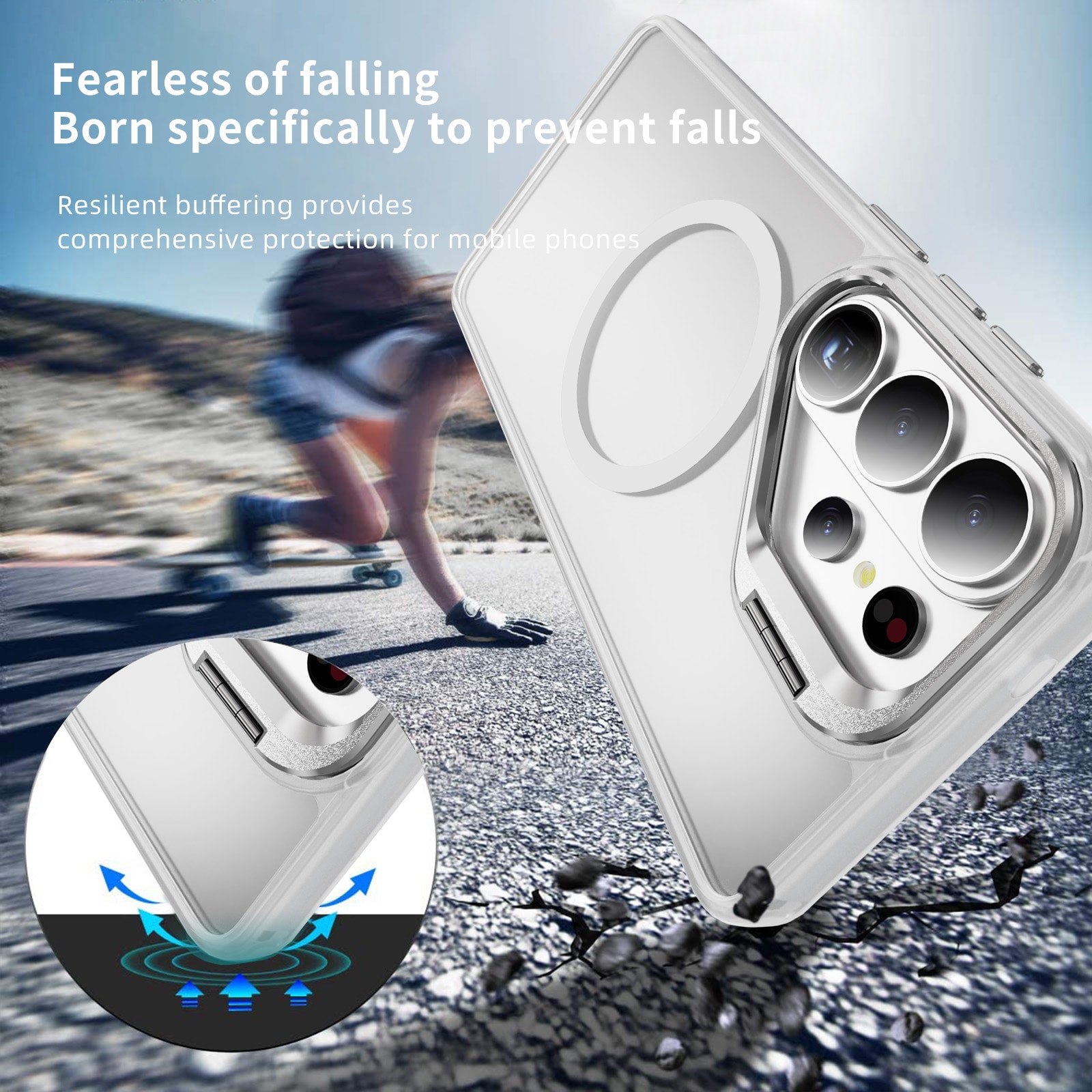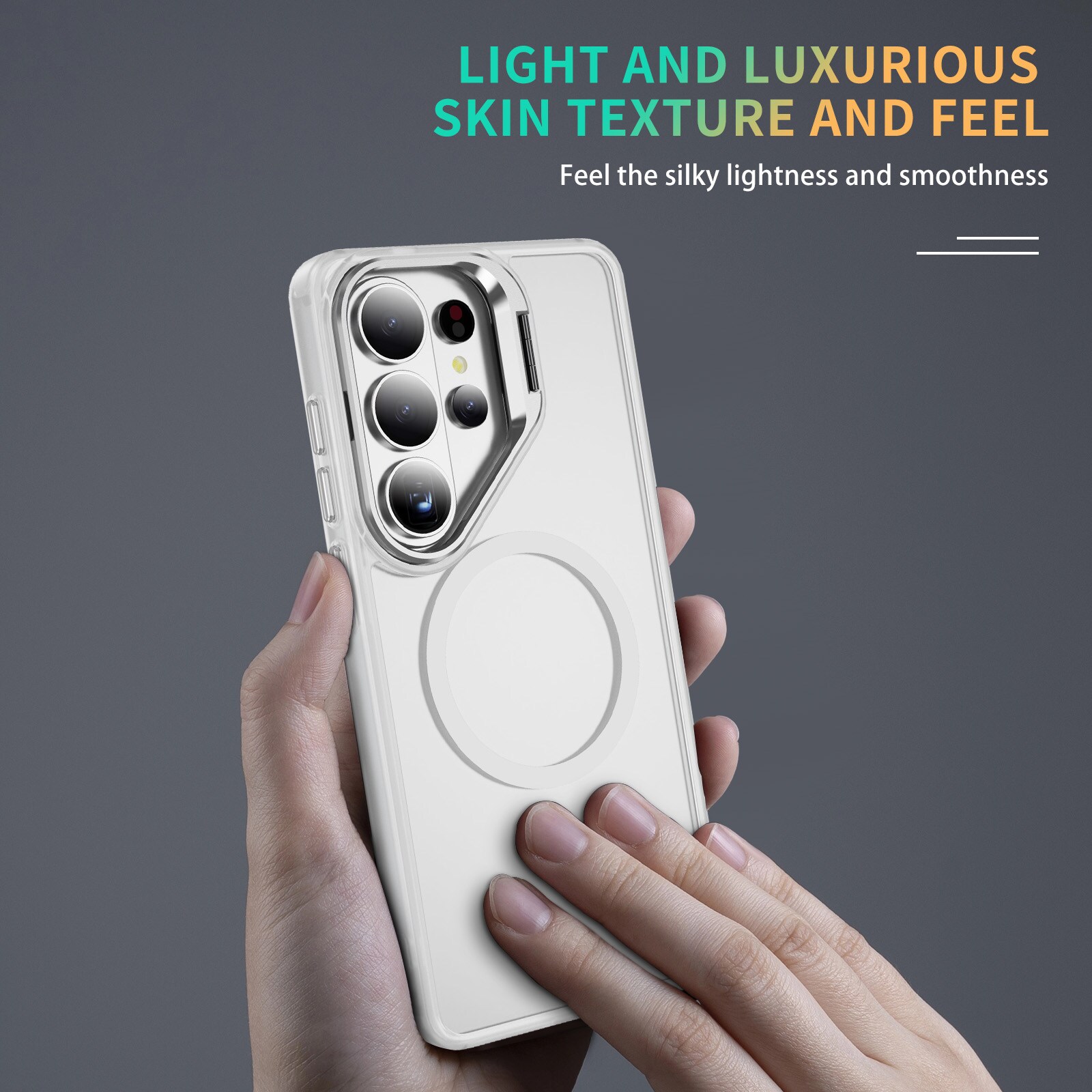 Sjekk ut dette hybriddekselet til din Samsung Galaxy S26 Ultra som ikke bare ser bra ut, men også er superpraktisk! Dette todelte vidunderet kombinerer en TPU-kjerne med et hardt plastdeksel, som gir deg den ultimate beskyttelsesboblen mot både små og store uhell. Men vent, det blir enda bedre! Dekselet er utstyrt med en metallramme rundt kameraet for å holde linsene dine trygge fra stygge støt og gir samtidig telefonen din en luksuriøs touch. I tillegg kan den lille rammen felles ut, og tada! Du har et praktisk stativ, perfekt for en serie-maraton.