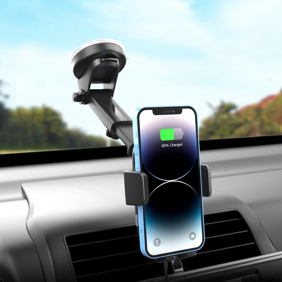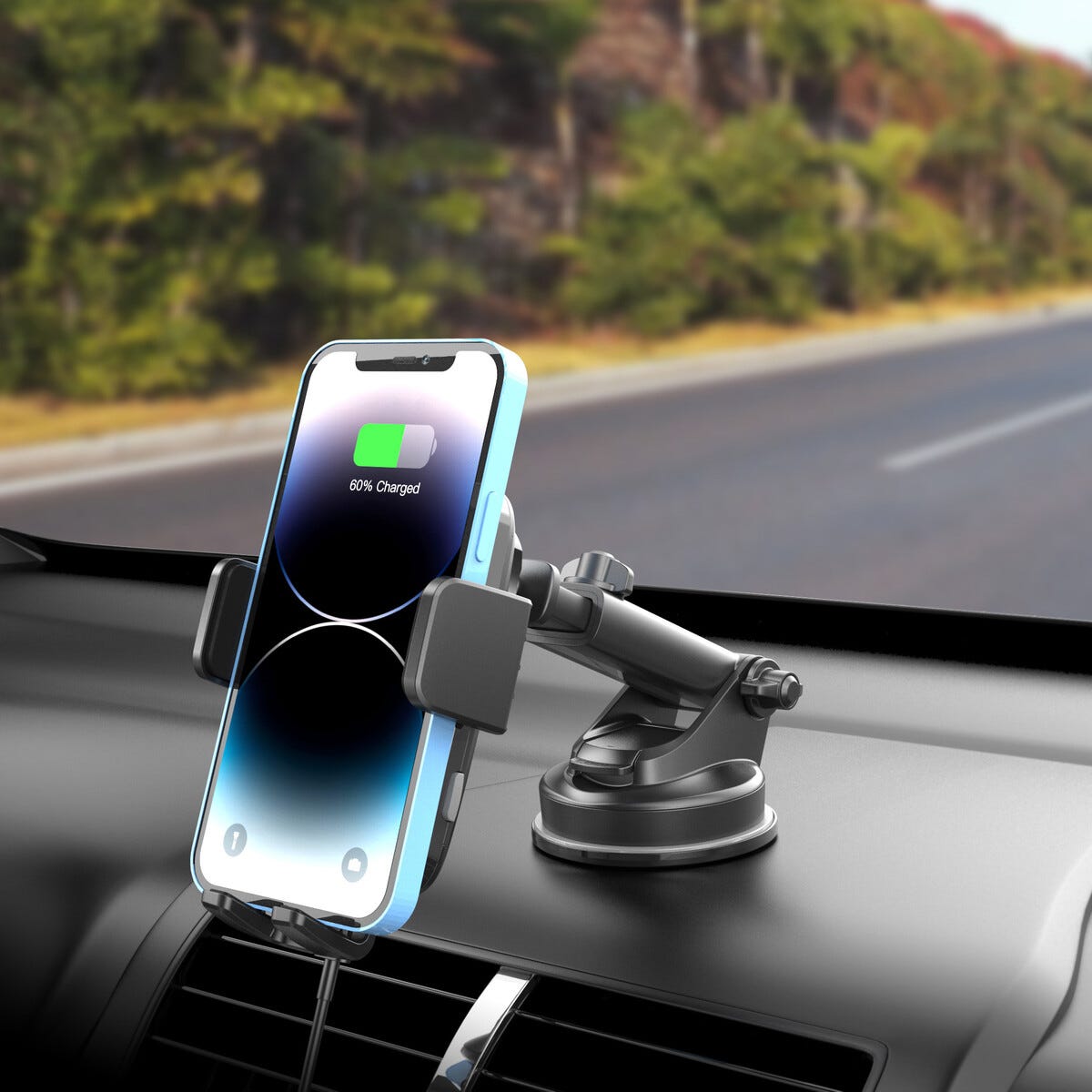 Sjekk mobilholderen som gjør kjøreturen både enklere og mer oppkoblet. Fest mobilen, start navigasjonen eller favorittmusikken og la den trådløse Qi-ladingen fylle på batteriet mens du kjører. Den sterke sugekoppen sørger for stabil montering på dashbordet eller frontruten slik at du alltid har skjermen i perfekt synsvinkel uten å miste fokus på veien. Den teleskopiske armen gir fleksibel rekkevidde og gjør det lett å justere visningen akkurat slik du vil ha den.