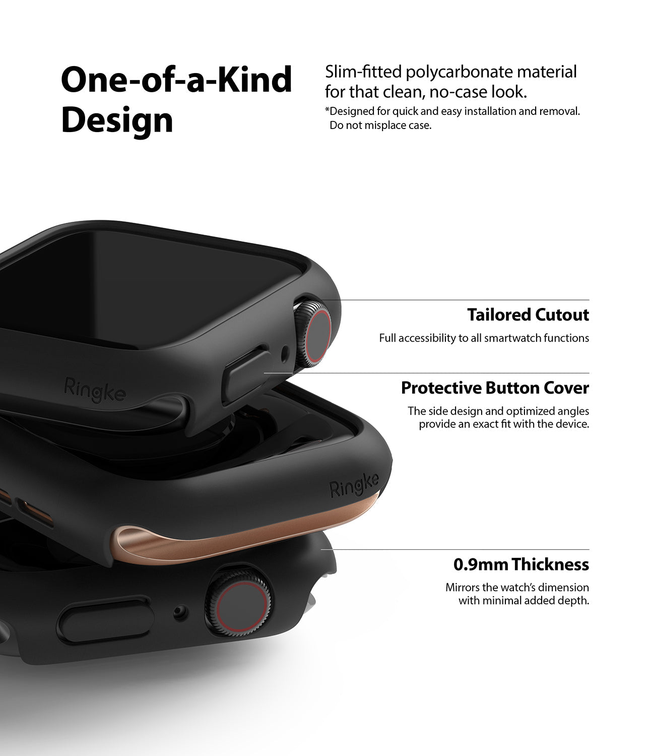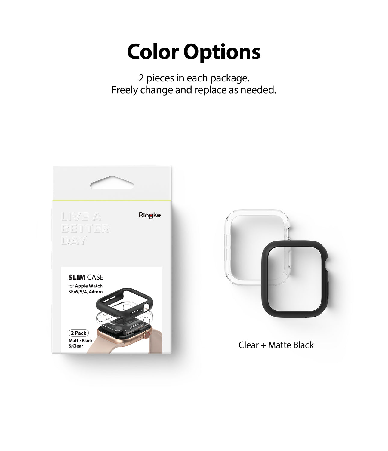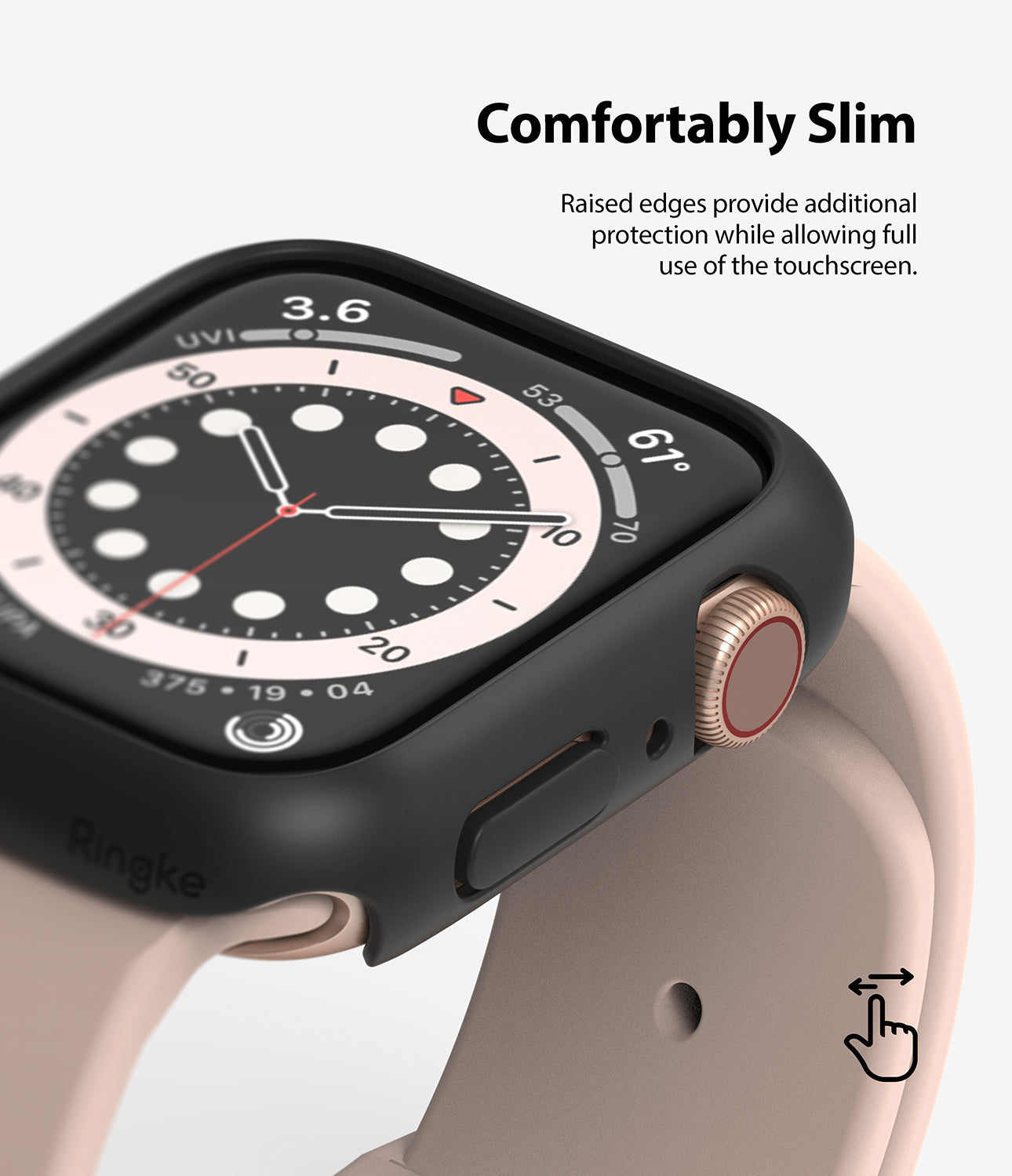 Hold din Apple Watch SE 3 44mm stilig og trygg uten at den føles klumpete med disse ultratynne dekslene fra Ringke! Ringke Slim Case legger knapt merke til klokkens tykkelse, kun 0,8 millimeter, så du kan beskytte smartklokken din uten at den blir stor og klumpete.