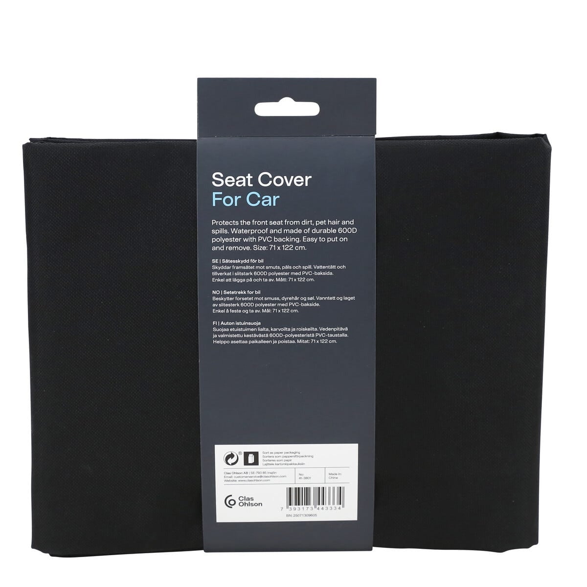 Den er enkel å legge på og ta av ved behov og kan raskt rengjøres før neste kjøretur. Med målene 71 x 122 cm passer setebeskytteren til de fleste bilers forseter og er et praktisk valg både til daglig bruk og lengre reiser.