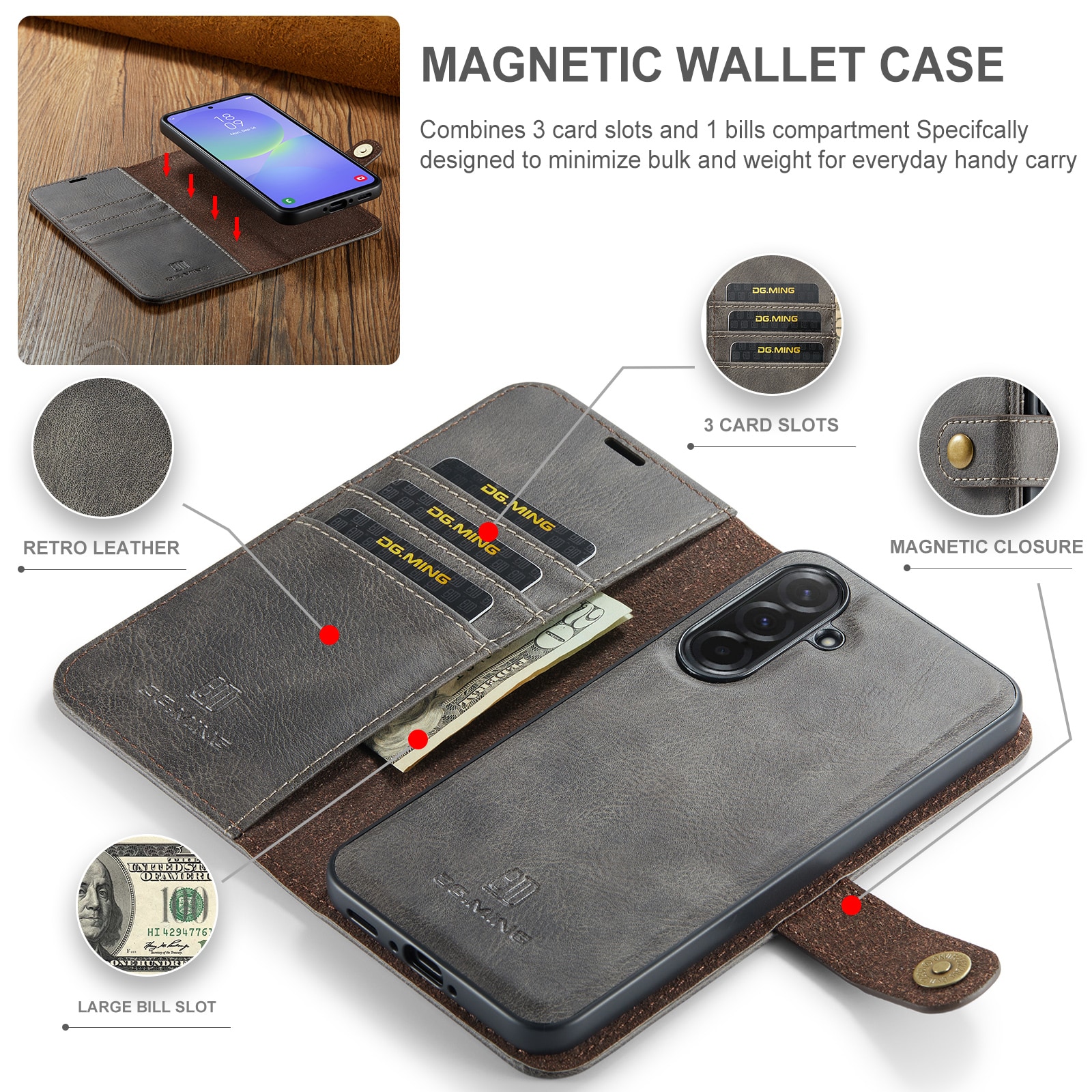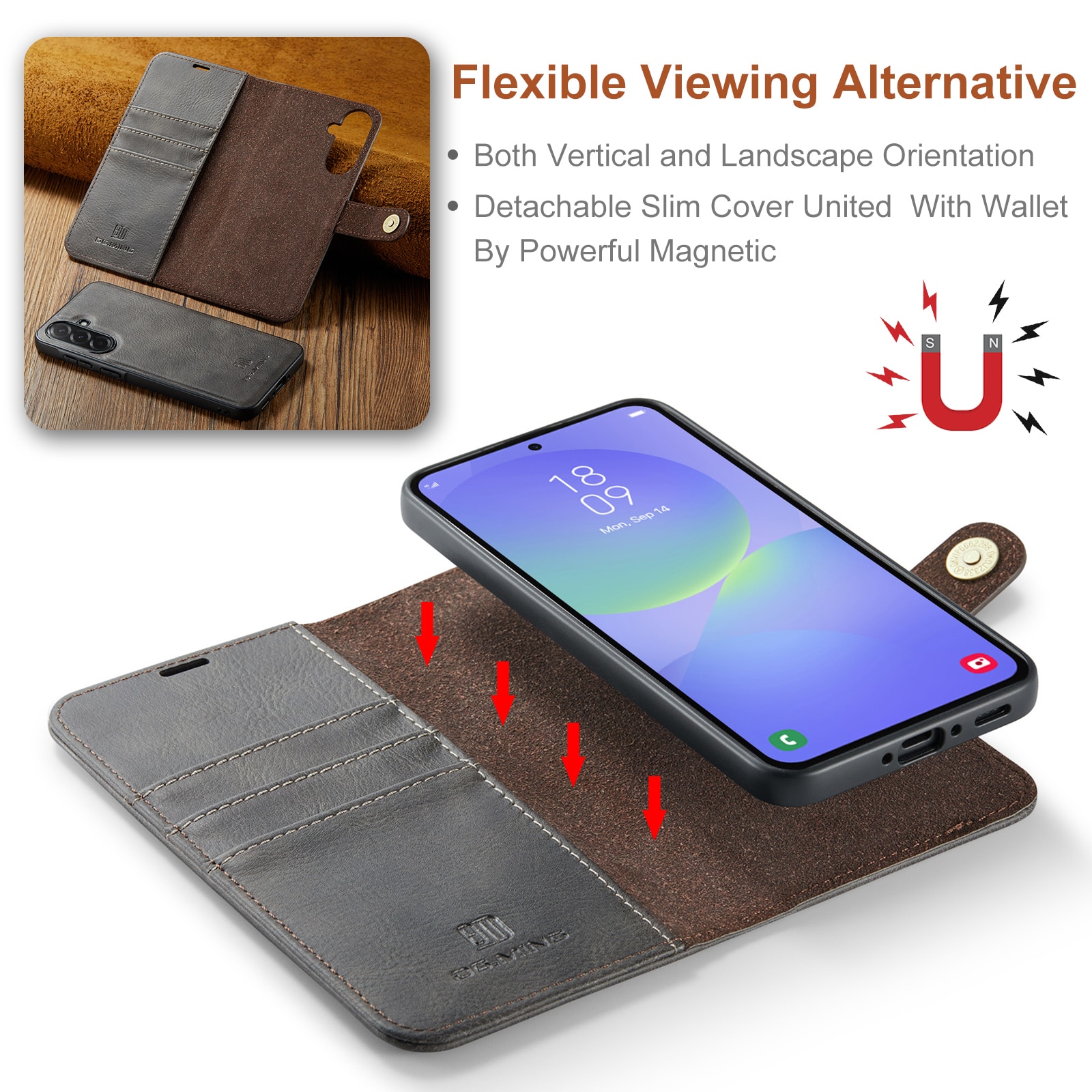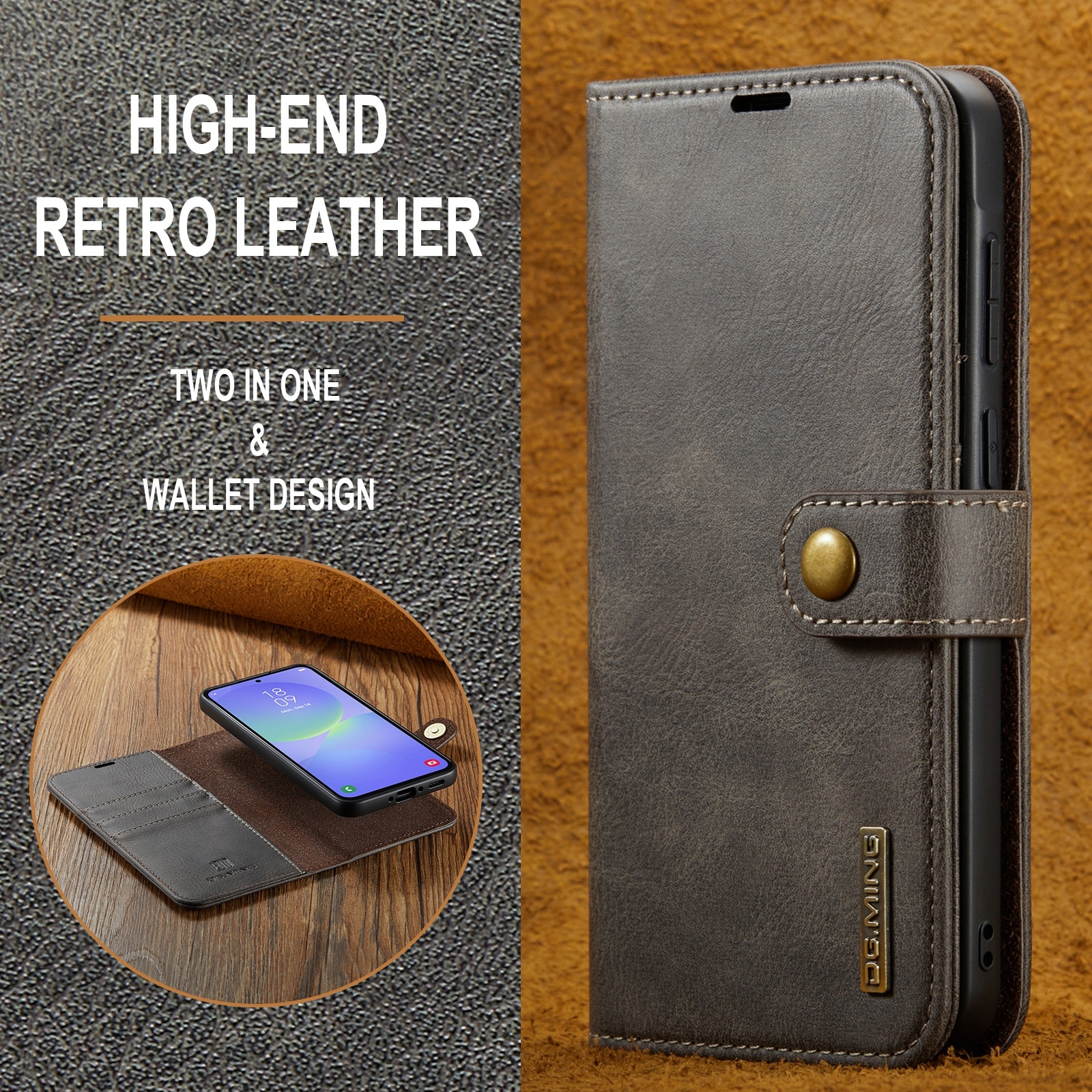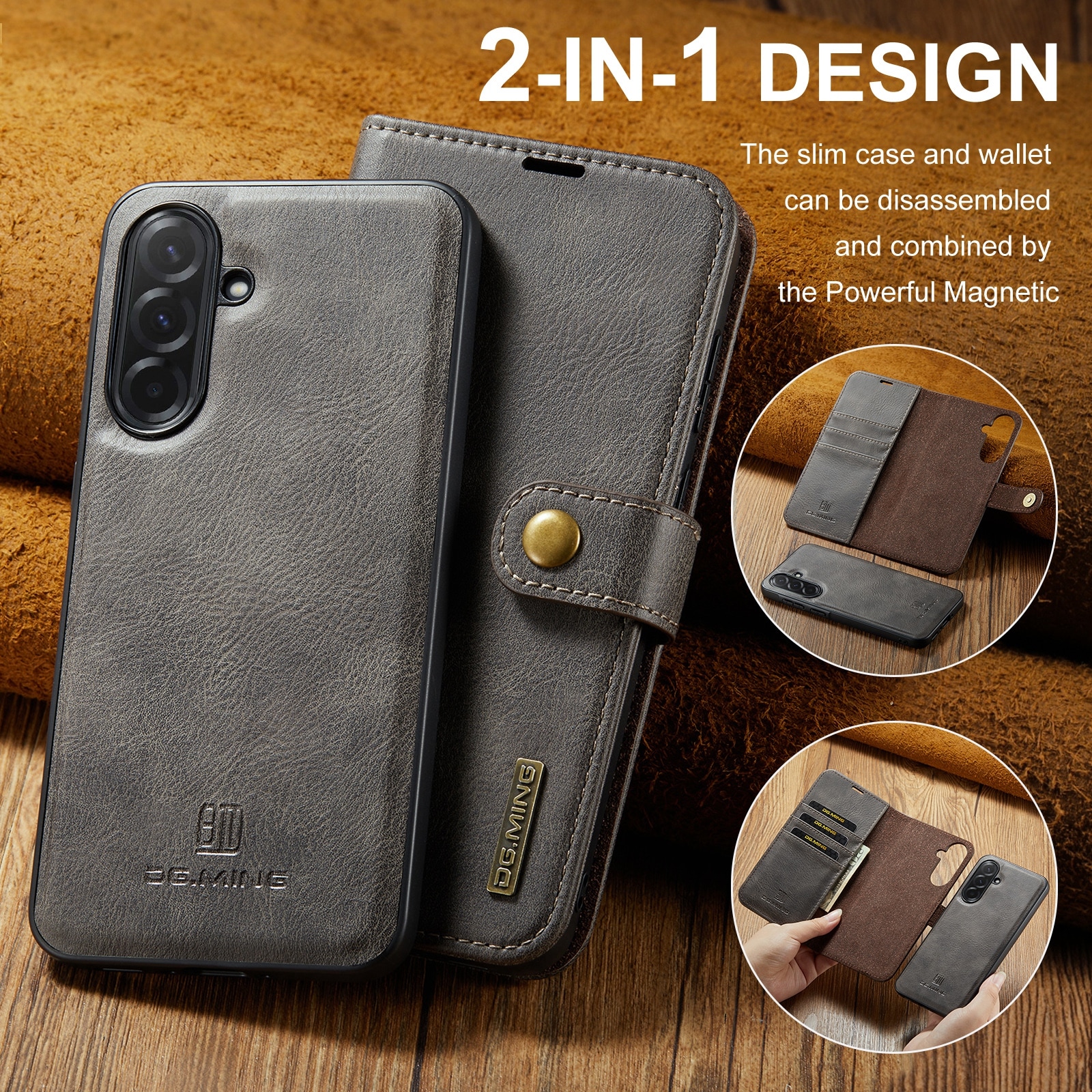 Sjekk ut vårt smarte etui med avtakbart magnetdeksel til Samsung Galaxy A37 fra DG.MING. Dette etuiet kombinerer klassisk stil med praktisk funksjonalitet. Med det avtakbare dekselet kan du enkelt ta ut mobilen fra etuiet når du er hjemme eller på jobb, uten å måtte ha med hele etuiet.