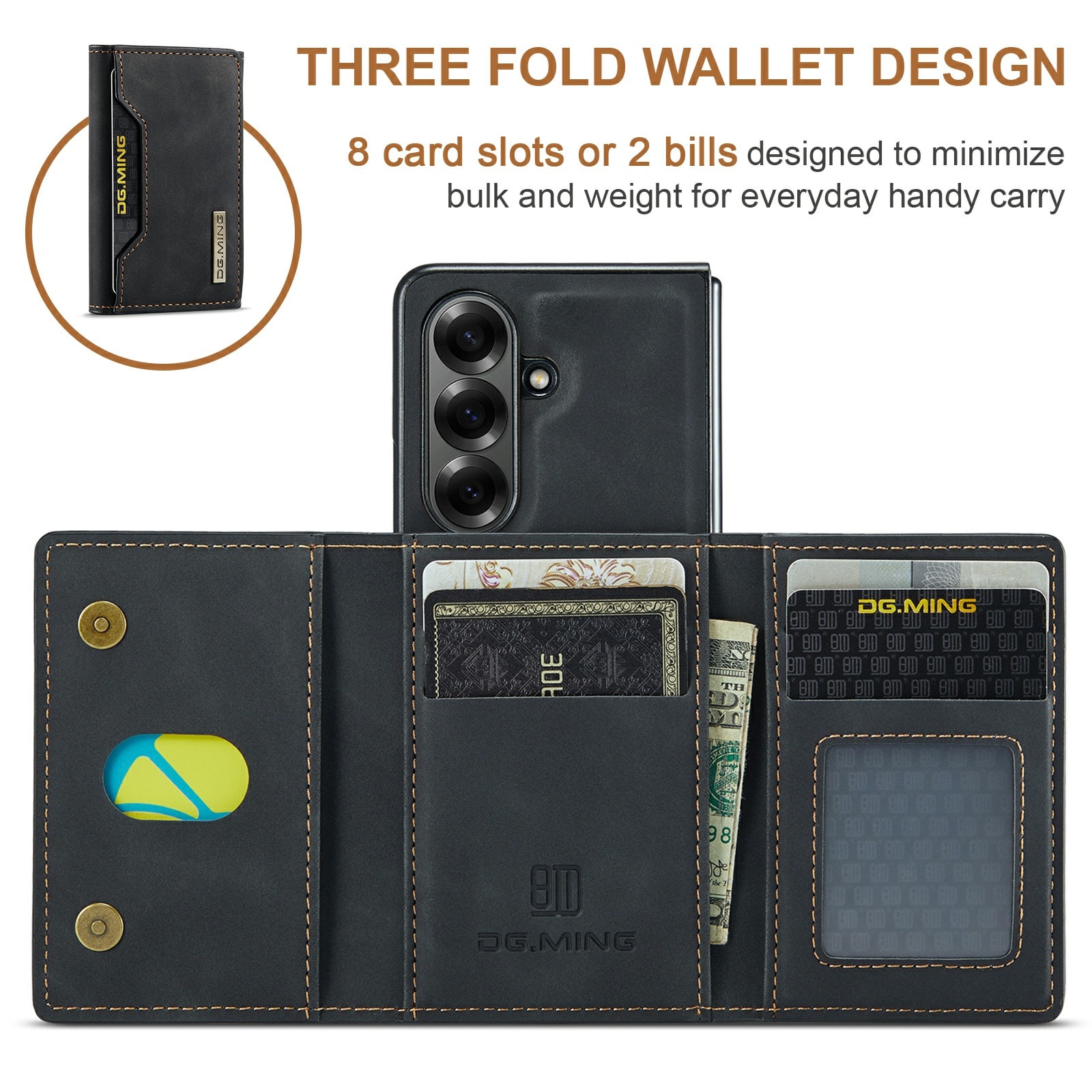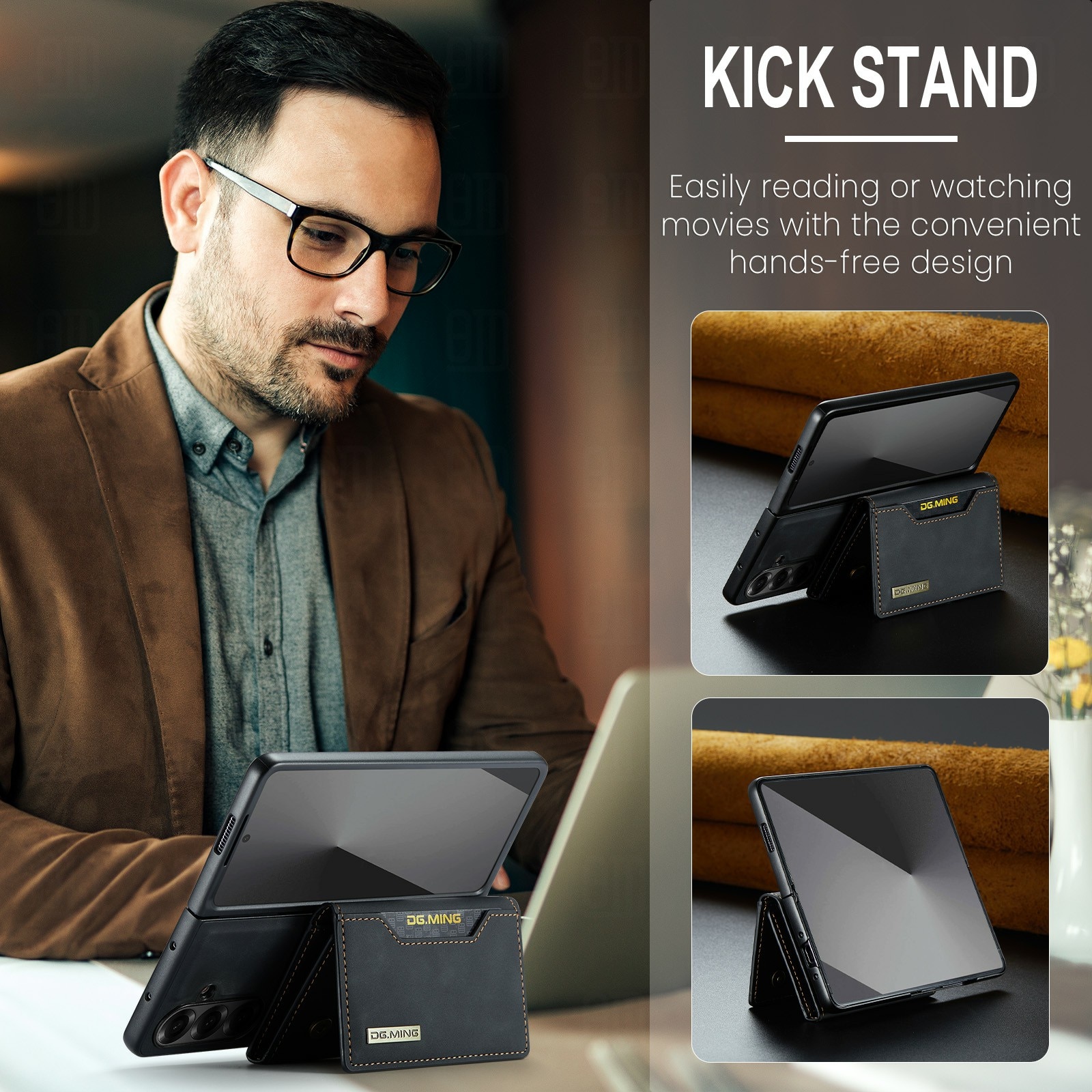 - Dobbelfunksjon som både lommebok og stativ