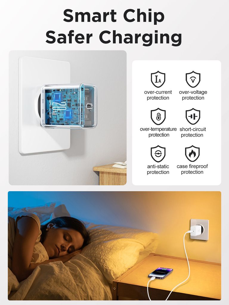 - USB-C PD hurtiglader for iPhone, iPad og Android