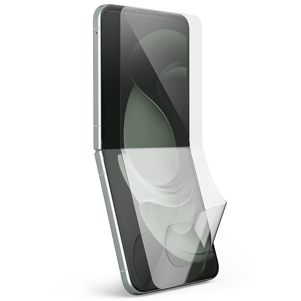 Beskytt innerskjermen på din Samsung Galaxy Z Flip 5 med det nyeste innen skjermbeskyttelsesteknologi fra Ringke. Disse gjennomsiktige skjermbeskytterne gir ikke bare beskyttelse mot riper og daglig slitasje, men har også en unik selvhelende evne. Dette betyr at små riper som oppstår under bruk gradvis forsvinner, og at skjermen ser ny og klar ut over tid.